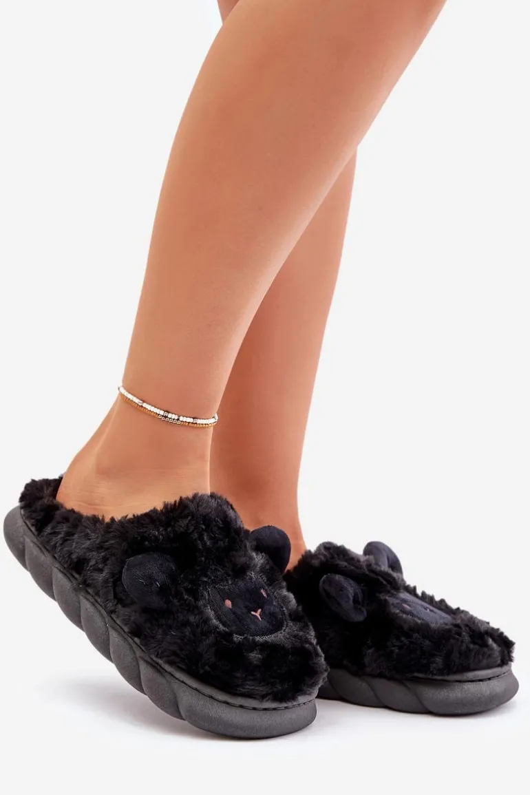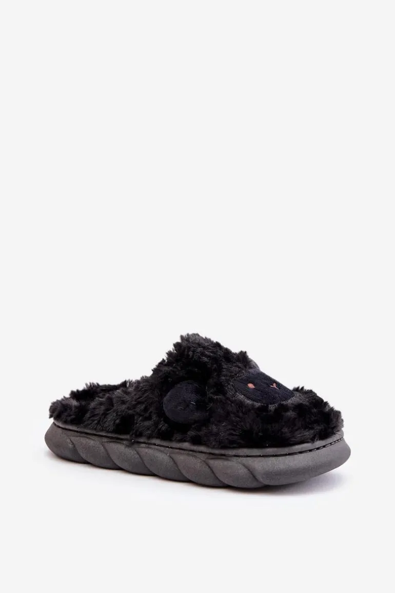 Futrzane Kapcie Damskie Z Motywem Owcy Czarne Phaeia