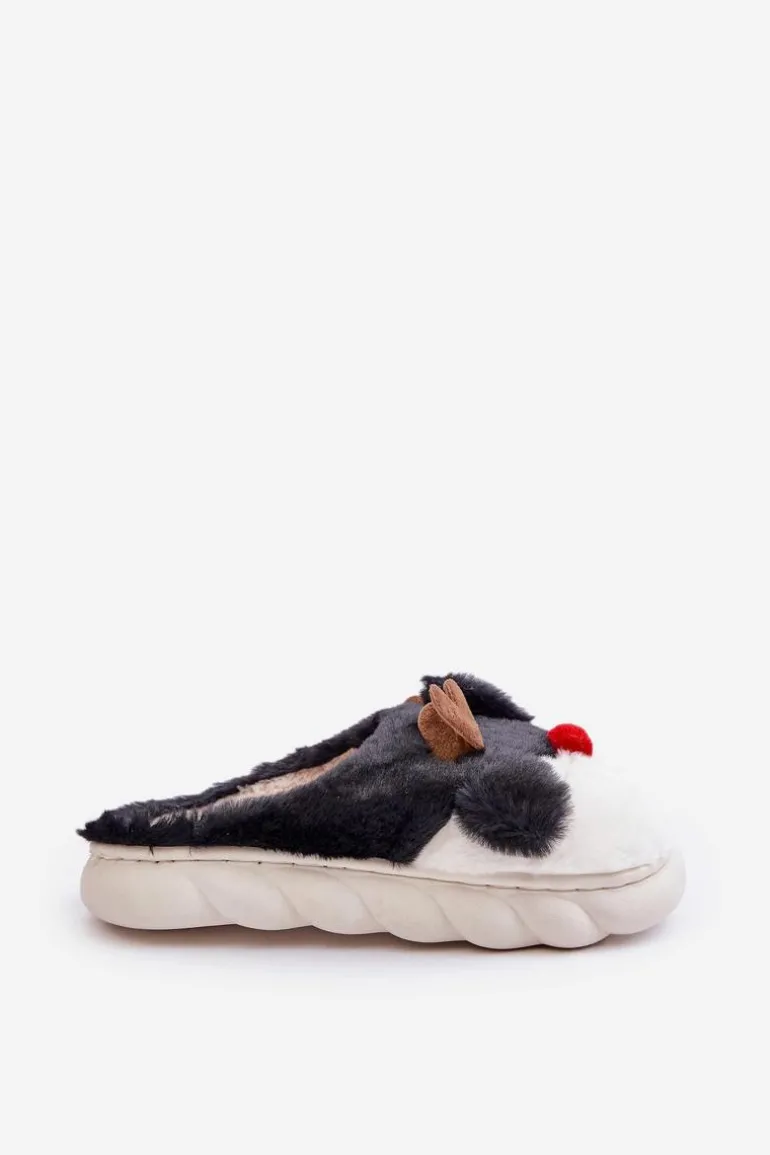 Futrzane Kapcie Damskie Z Motywem Renifera Czarne Wistira