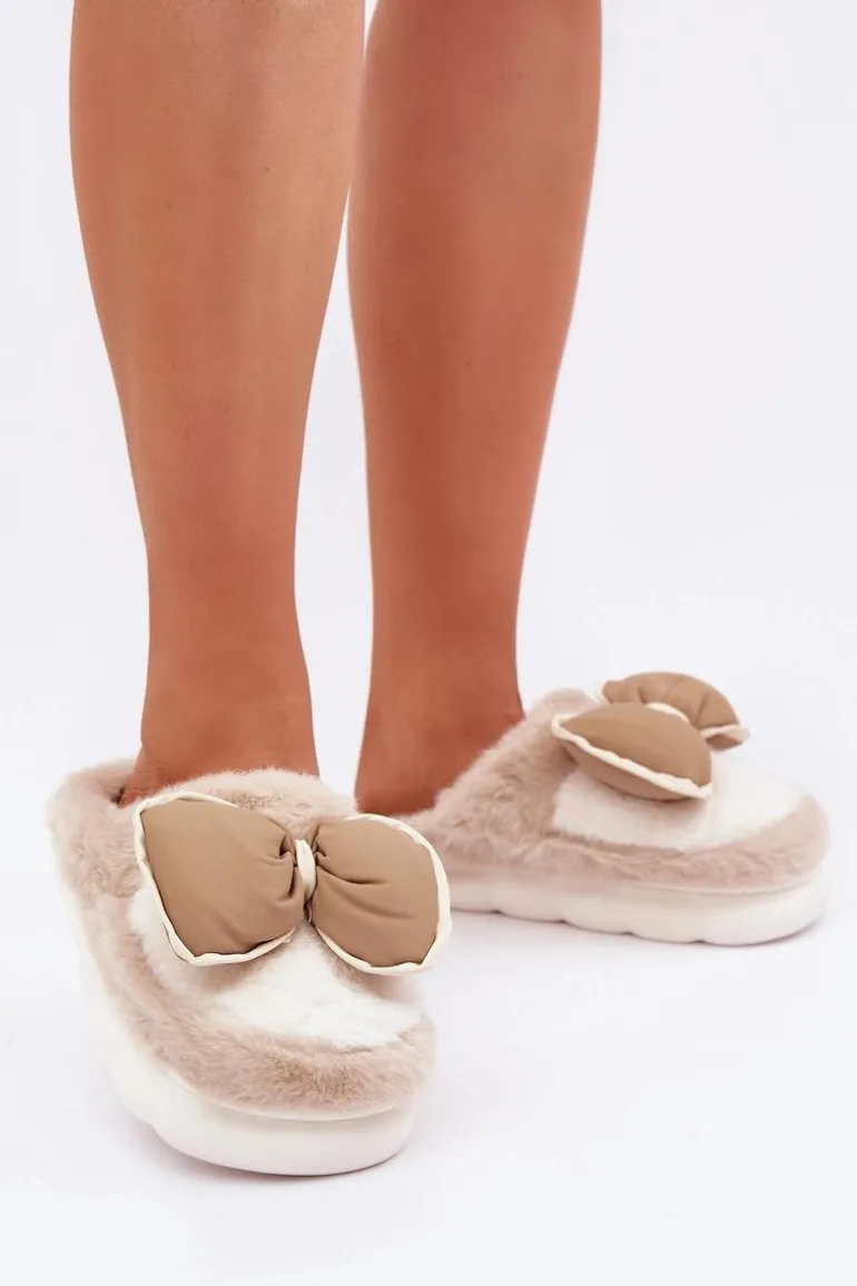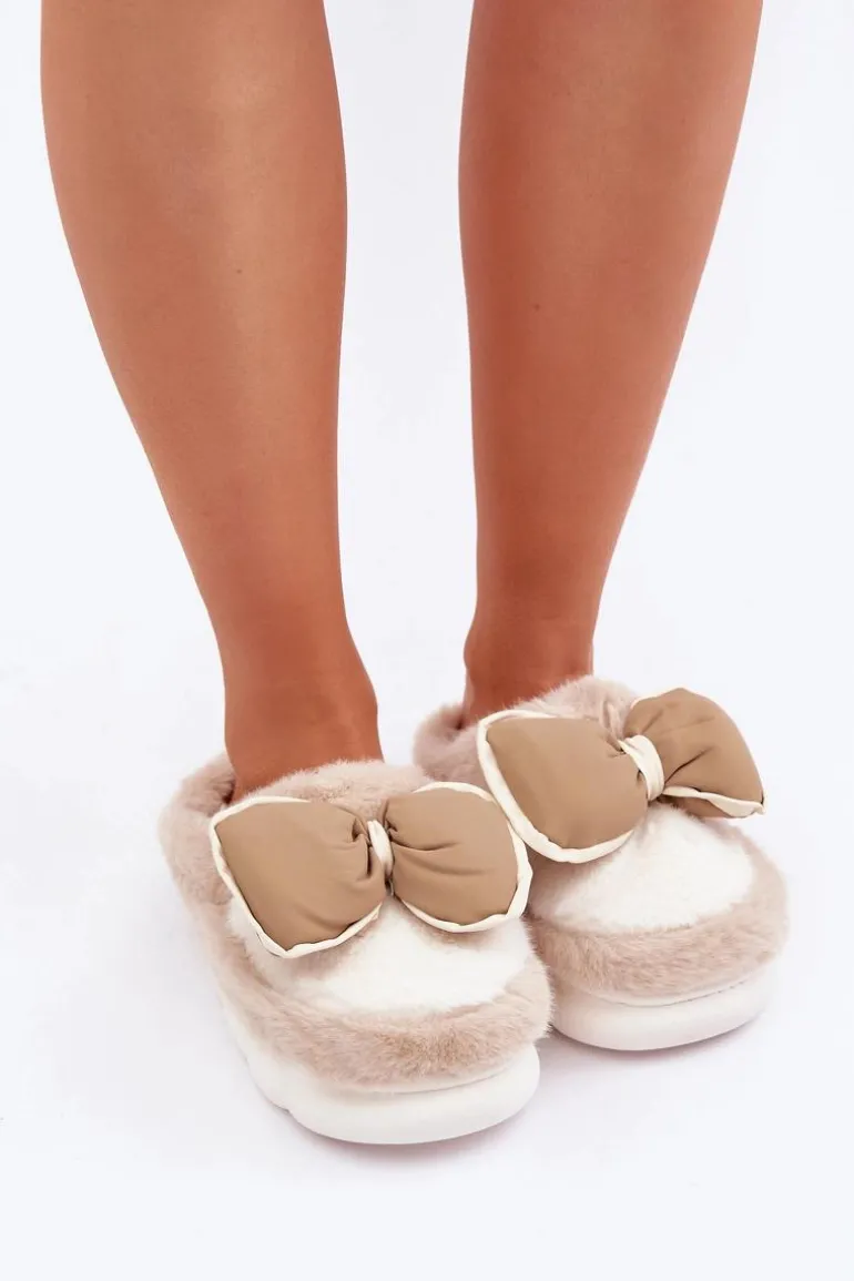 Kapcie damskie wykonane z miękkiego, przytulnego futerka, idealnie otulają stopy, zapewniając ciepło i komfort. Model osadzony na grubszej podeszwie, co dodaje stabilności i izoluje od chłodnego podłoża. Zakryte noski zapewniają dodatkową ochronę przed zimnem, czyniąc kapcie idealnym wyborem na chłodne dni. Przód ozdobiony kokardką, która nadaje wyjątkowego uroku. Stylowe i praktyczne! Przy wyborze rozmiaru prosimy sugerować się tabelą rozmiarów.