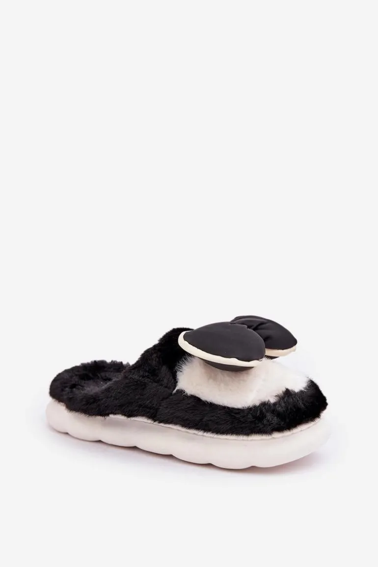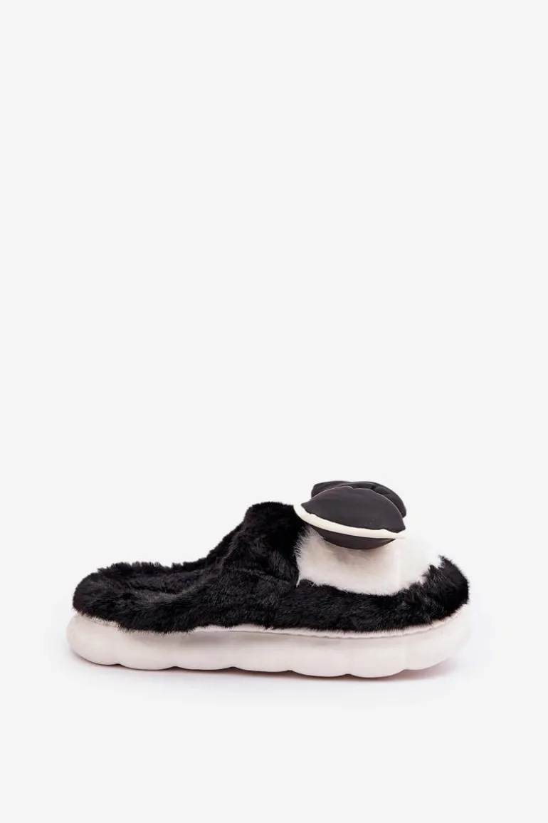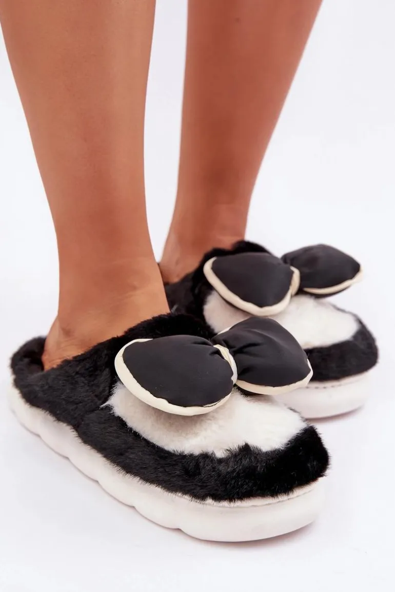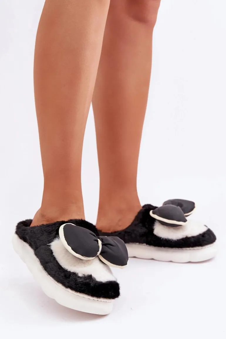 Kapcie damskie wykonane z miękkiego, przytulnego futerka, idealnie otulają stopy, zapewniając ciepło i komfort. Model osadzony na grubszej podeszwie, co dodaje stabilności i izoluje od chłodnego podłoża. Zakryte noski zapewniają dodatkową ochronę przed zimnem, czyniąc kapcie idealnym wyborem na chłodne dni. Przód ozdobiony kokardką, która nadaje wyjątkowego uroku. Stylowe i praktyczne! Przy wyborze rozmiaru prosimy sugerować się tabelą rozmiarów.