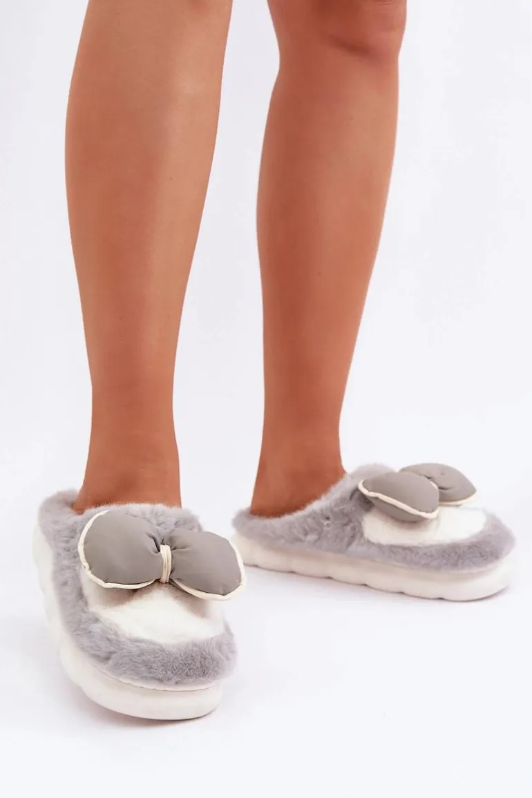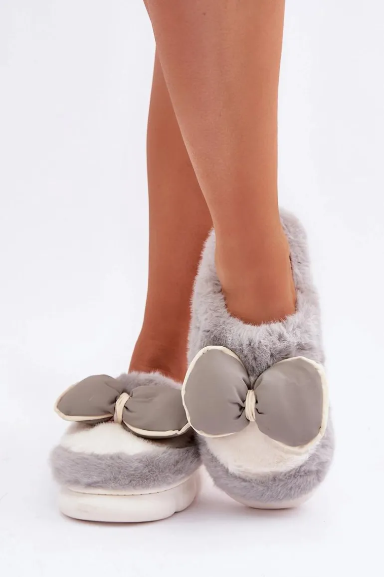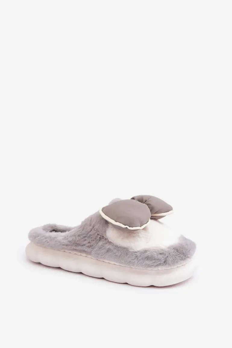 Kapcie damskie wykonane z miękkiego, przytulnego futerka, idealnie otulają stopy, zapewniając ciepło i komfort. Model osadzony na grubszej podeszwie, co dodaje stabilności i izoluje od chłodnego podłoża. Zakryte noski zapewniają dodatkową ochronę przed zimnem, czyniąc kapcie idealnym wyborem na chłodne dni. Przód ozdobiony kokardką, która nadaje wyjątkowego uroku. Stylowe i praktyczne! Przy wyborze rozmiaru prosimy sugerować się tabelą rozmiarów.