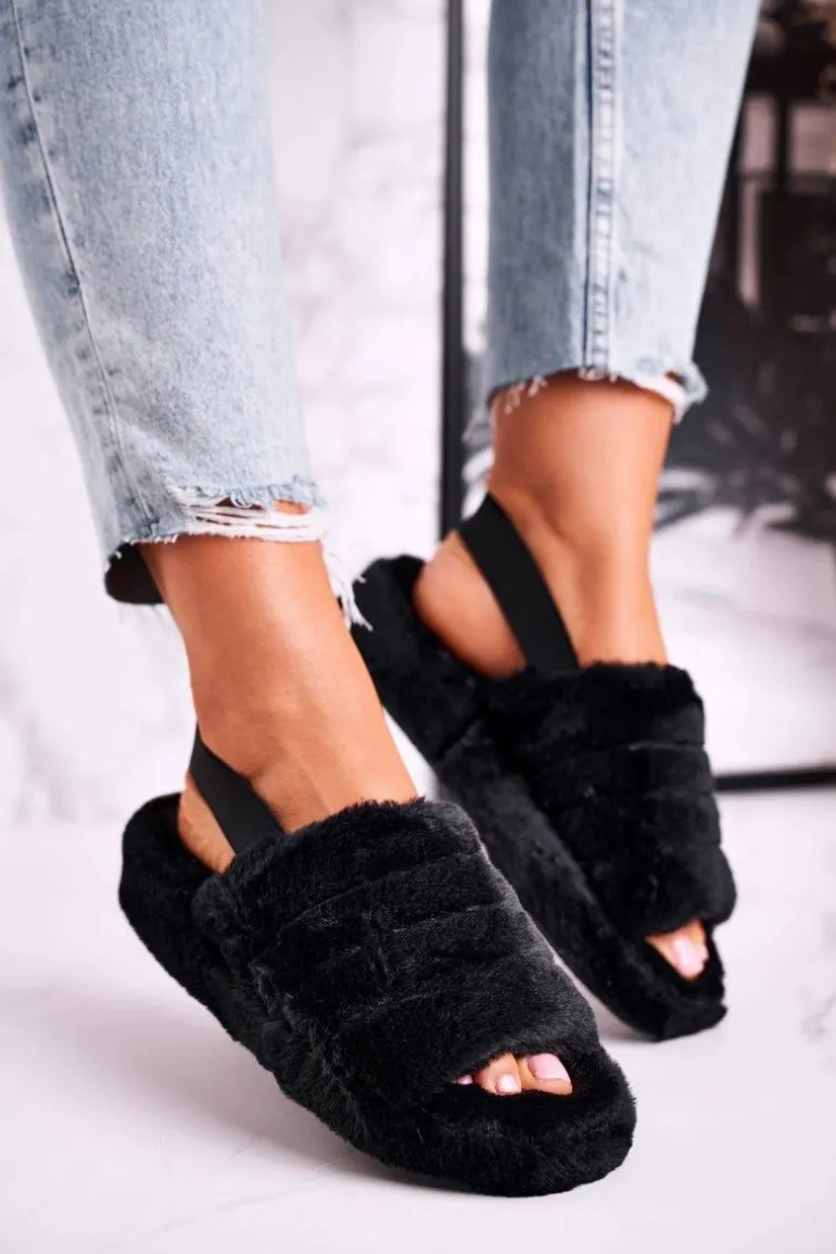 Wygodne futrzane klapki na platformie. Buty wykonane są w całości z ekologicznego futerka. Szeroki ściągacz zapewni dopasowanie do stopy! Przy wyborze rozmiaru prosimy sugerować się tabelą rozmiarów.