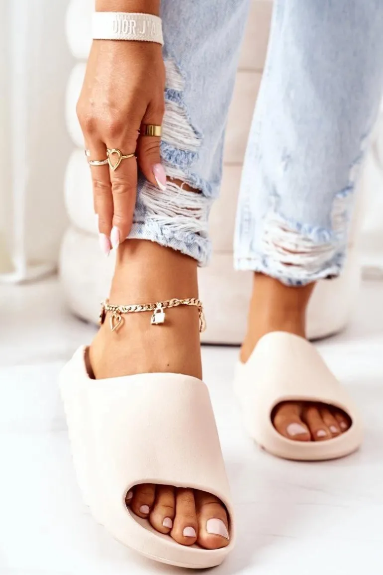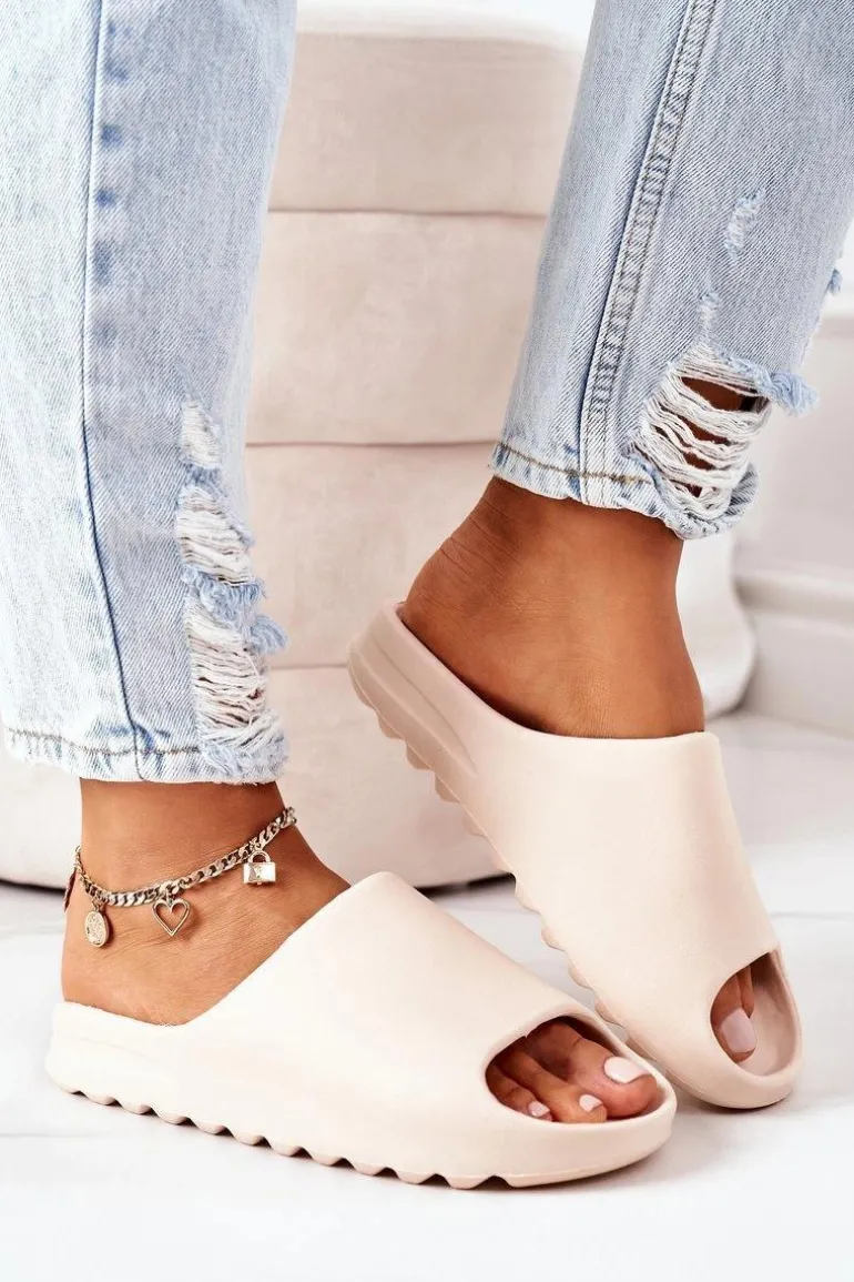 Wyjątkowe klapki wykonane z lekkiego, piankowego tworzywa. Buty posiadają delikatnie profilowaną wkładkę. Przy wyborze rozmiaru prosimy sugerować się tabelą rozmiarów.