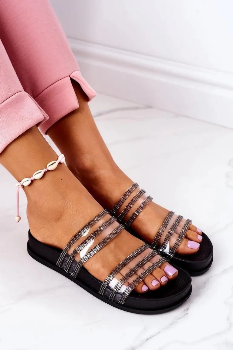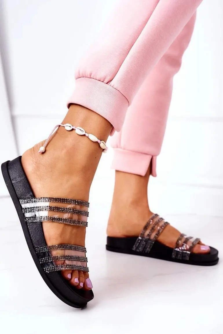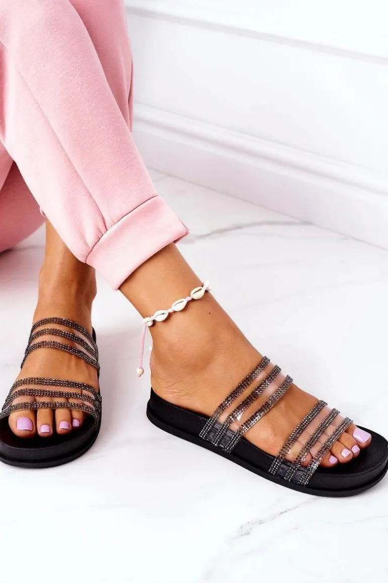 Gumowe Klapki Z Cyrkoniami Czarne Miss You