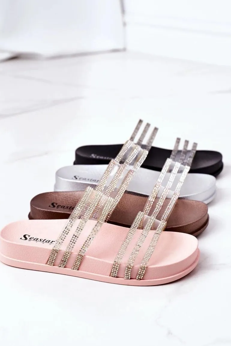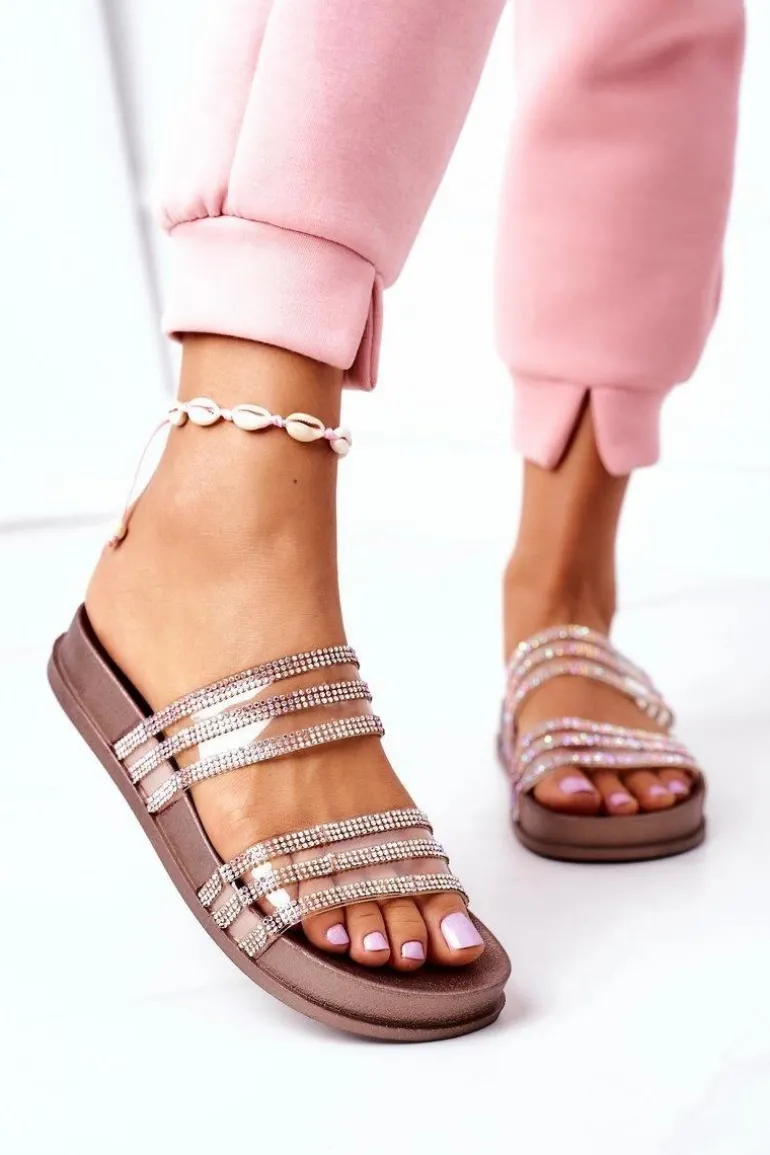 Gumowe Klapki Z Cyrkoniami Różowe Złoto Miss You