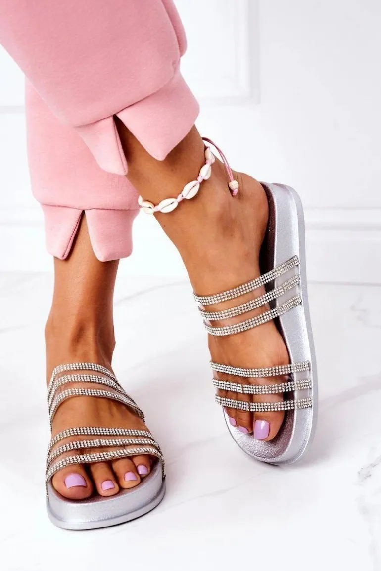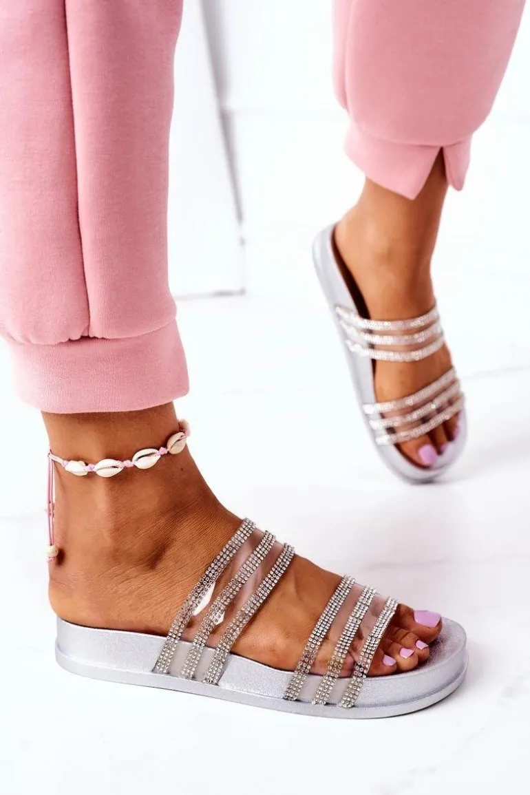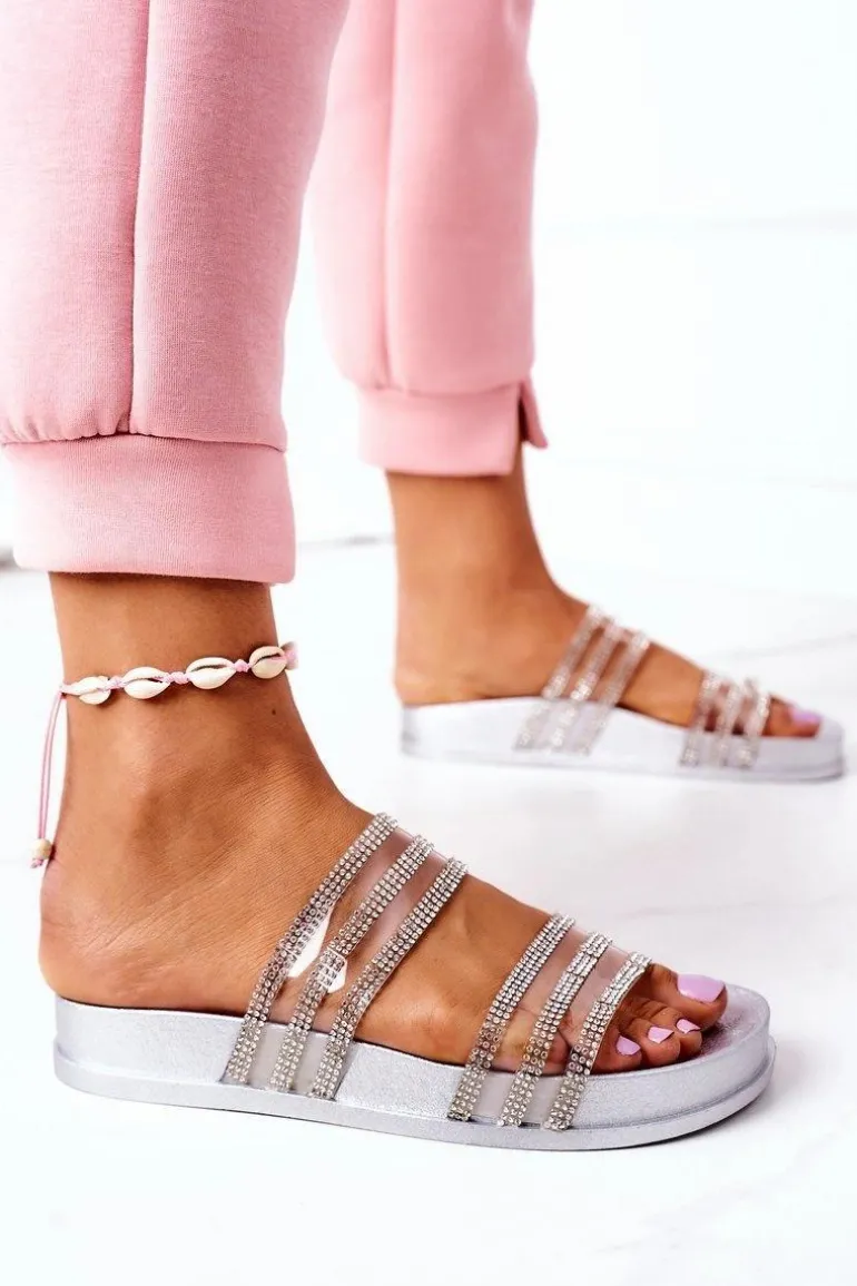 Gumowe klapki damskie ozdobione cyrkoniami. Klapki wykonane są z lekkiego gumowego tworzywa.Przy wyborze rozmiaru prosimy sugerować się tabelą rozmiarów.