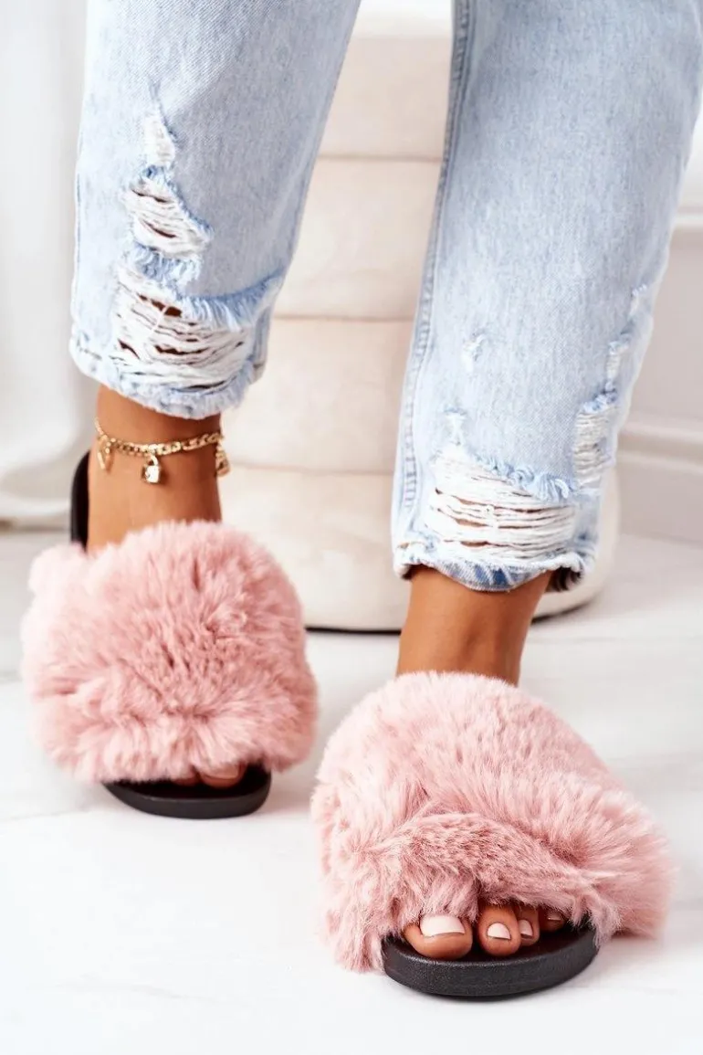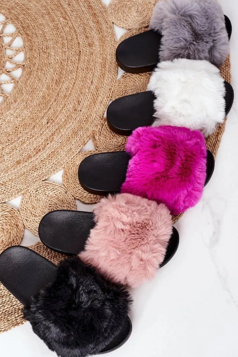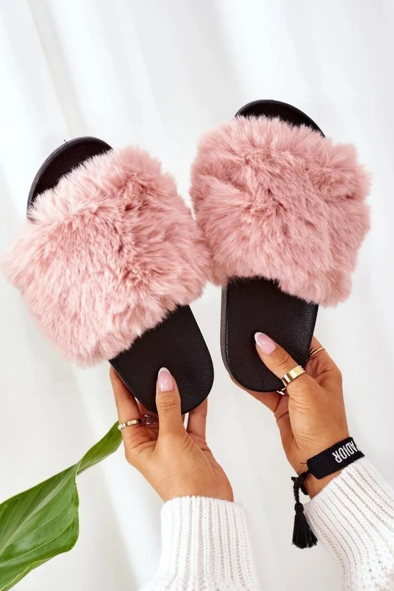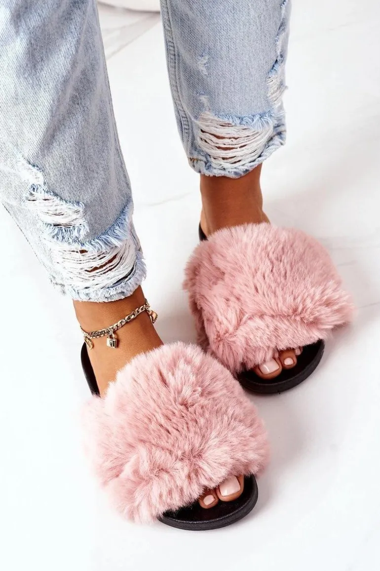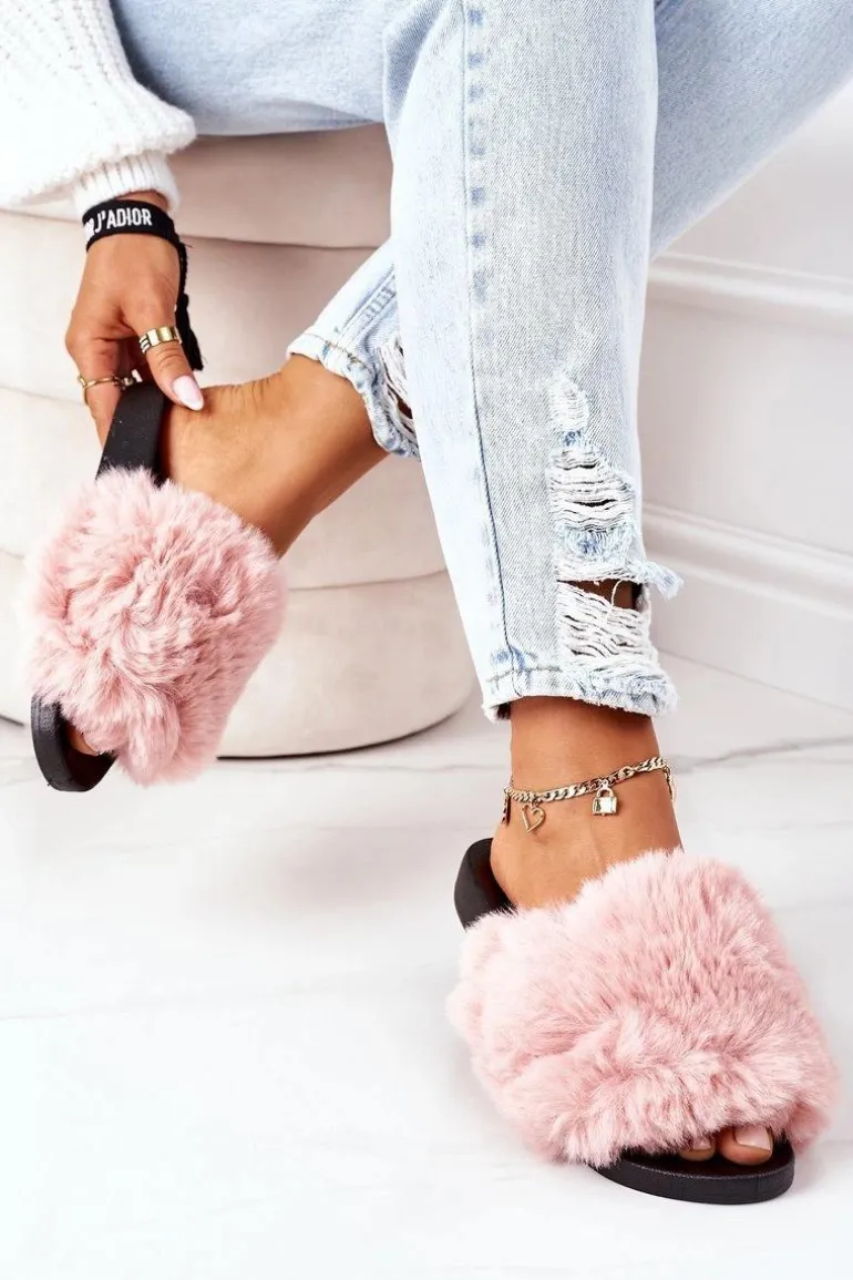 Gumowe Klapki Z Futerkiem Różowe Soft