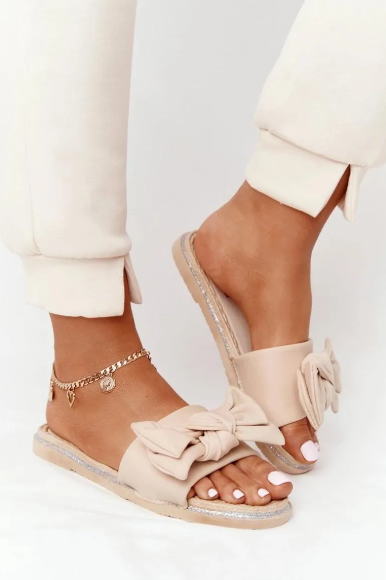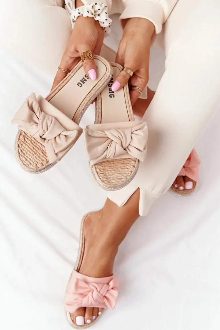Gumowe klapki damskie z kokardą. Klapki to świetna propozycja dla kobiet ceniących sobie komfort w letnie dni! Buty posiadają miękką materiałową wkładkę oraz gumową podeszwę. Przy wyborze rozmiaru prosimy sugerować się tabelą rozmiarów.