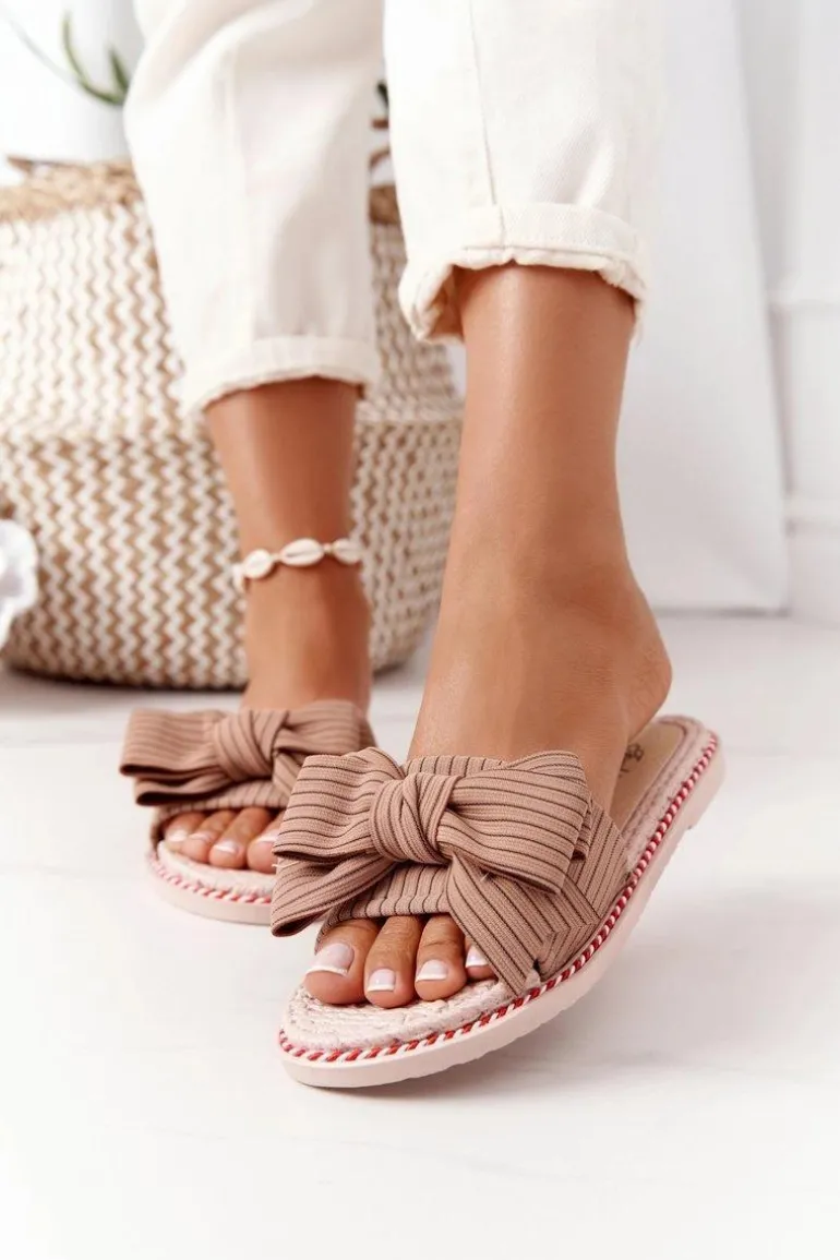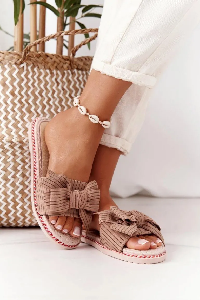 Gumowe Klapki Z Kokardą Brązowe Gabriell