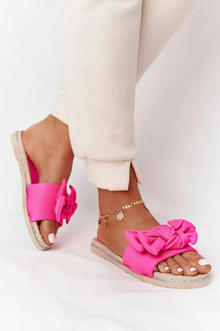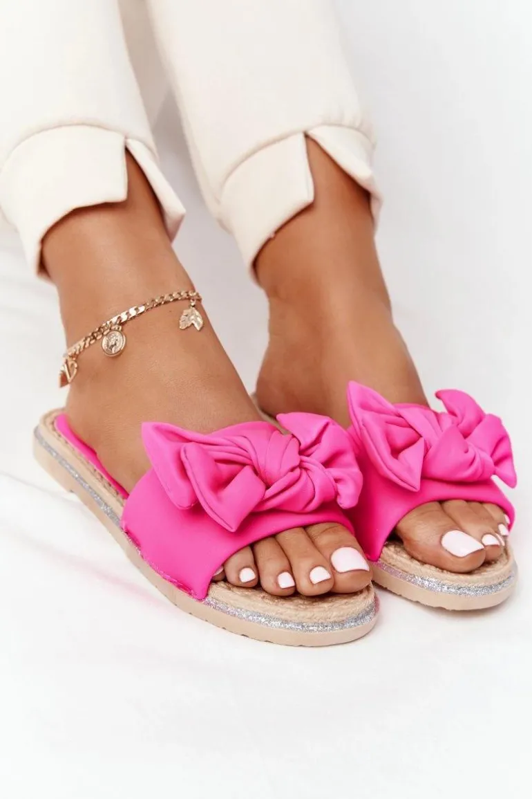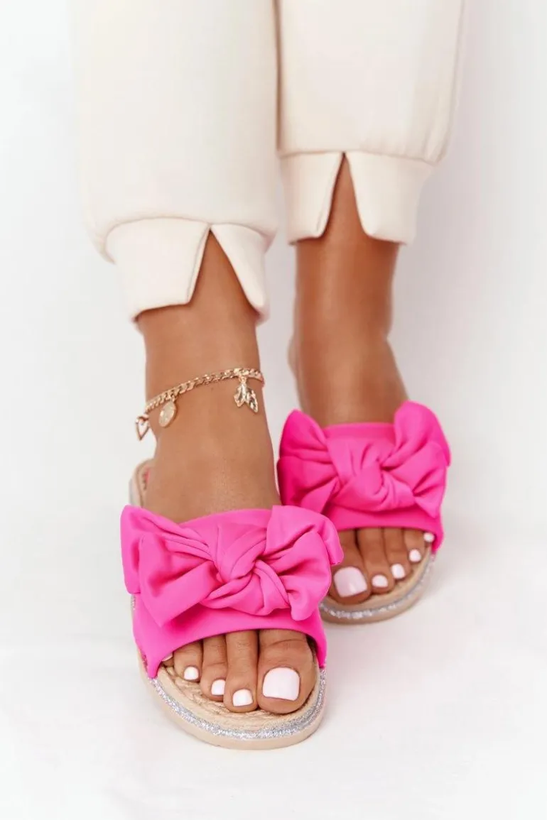 Gumowe klapki damskie z kokardą. Klapki to świetna propozycja dla kobiet ceniących sobie komfort w letnie dni! Buty posiadają miękką materiałową wkładkę oraz gumową podeszwę. Przy wyborze rozmiaru prosimy sugerować się tabelą rozmiarów.