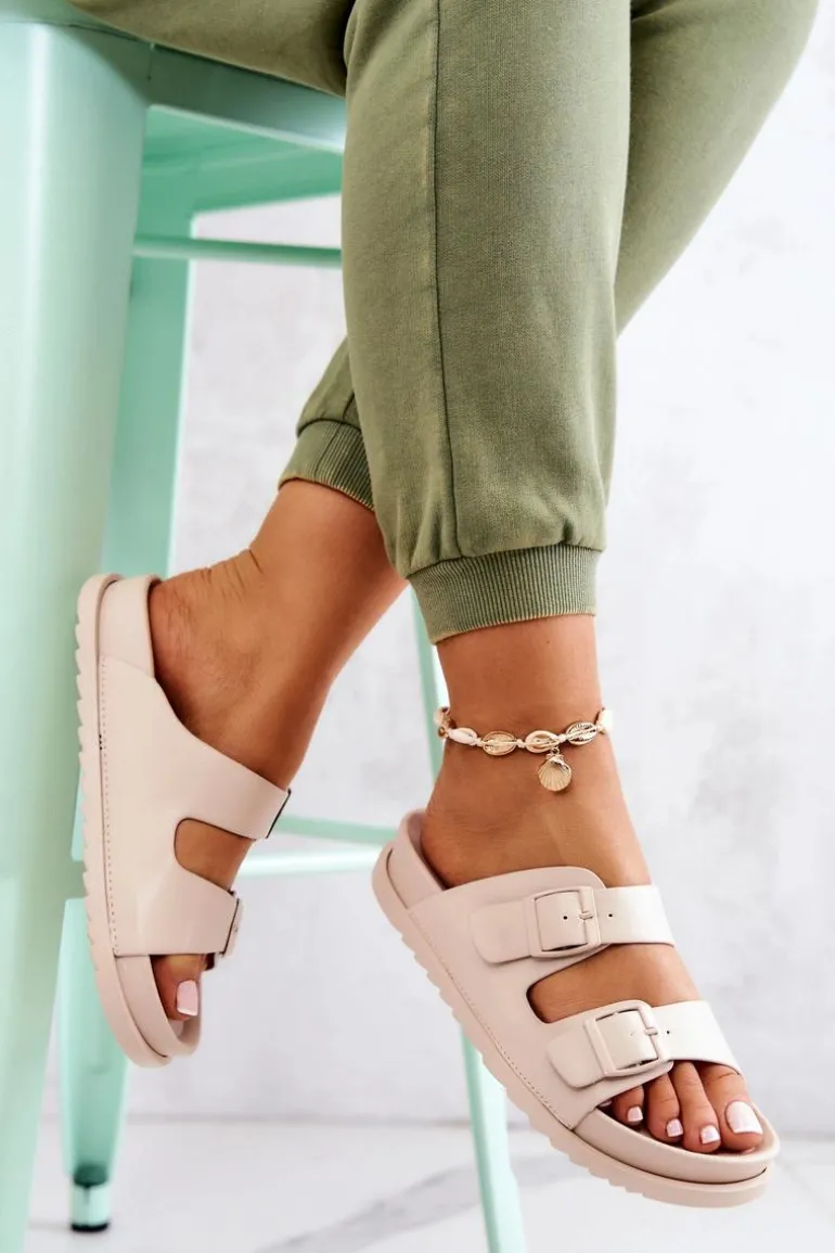 Gumowe Klapki Ze Sprzączką Beżowe Corina