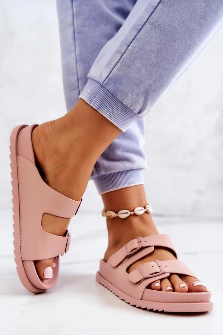Gumowe Klapki Ze Sprzączką Różowe Corina