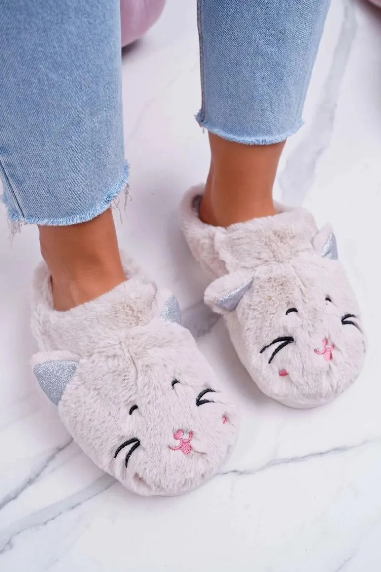 Kapcie Damskie Kotki z Uszami Białe Sleppyhead