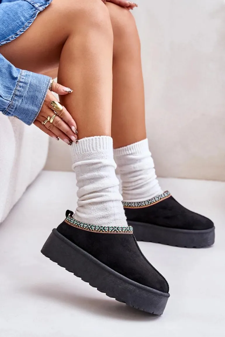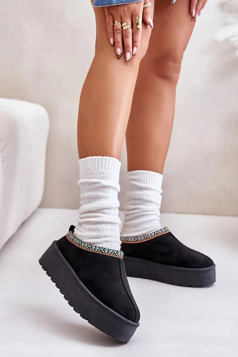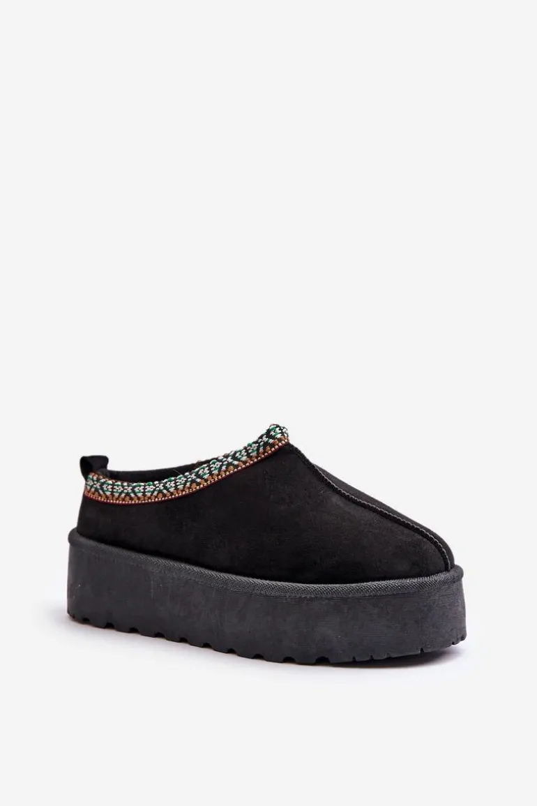 Kapcie Damskie Na Platformie Z Haftem Czarne Neroma