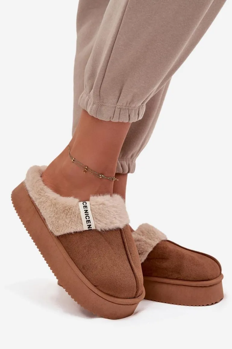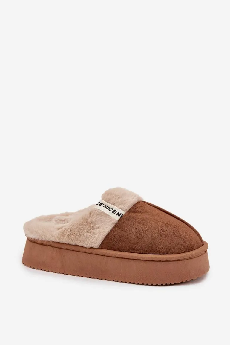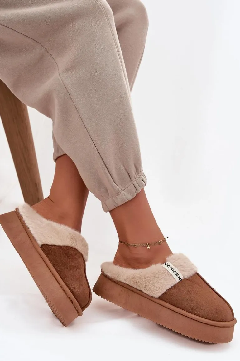 Kapcie damskie wykonane z miękkiej eko zamszowej tkaniny to idealna propozycja dla kobiet ceniących ciepło i wygodę. Model osadzony został na grubej podeszwie, która zapewnia stabilność oraz komfort podczas chodzenia po domu. Górną część ozdobiono przyjemnym w dotyku futerkiem i stylowym paseczkiem z napisem, co nadaje całości modnego i przytulnego charakteru. Wnętrze kapci zostało ocieplone, dzięki czemu doskonale chronią stopy przed chłodem. Przy wyborze rozmiaru prosimy sugerować się tabelą rozmiarów.