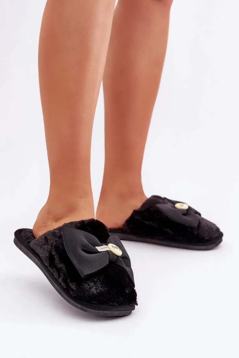 Ciepłe kapcie damskie z miękkim futerkiem i uroczą kokardą, które zapewnią komfort i przytulność w chłodne wieczory. Doskonałe na relaks przed telewizorem, łączą funkcjonalność z uroczym, kobiecym stylem. Idealne do noszenia w domu, zapewniając ciepło i wygodę! .Przy wyborze rozmiaru prosimy sugerować się tabelą rozmiarów.