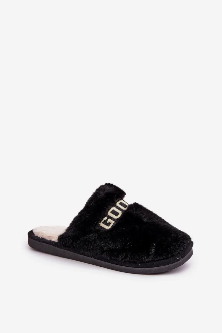 Kapcie damskie wykonane z miękkiego futerka, które zapewnia wyjątkowy komfort i ciepło. Model ozdobiony stylowym napisem, który dodaje nowoczesnego charakteru. Idealne na chłodne dni, doskonale sprawdzą się jako wygodne obuwie domowe, łącząc funkcjonalność z modnym wyglądem. Przy wyborze rozmiaru prosimy kierować tabelą rozmiarów.
