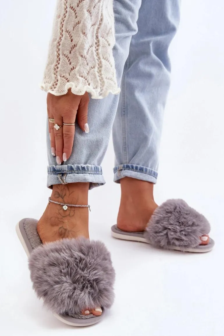 Klasyczne kapcie damskie z futerkiem. Noski odkryte. Miękka wkładka zapewni komfort podczas użytkowania. Koniecznie powinnaś je mieć! Przy wyborze rozmiaru prosimy kierować tabelą rozmiarów.