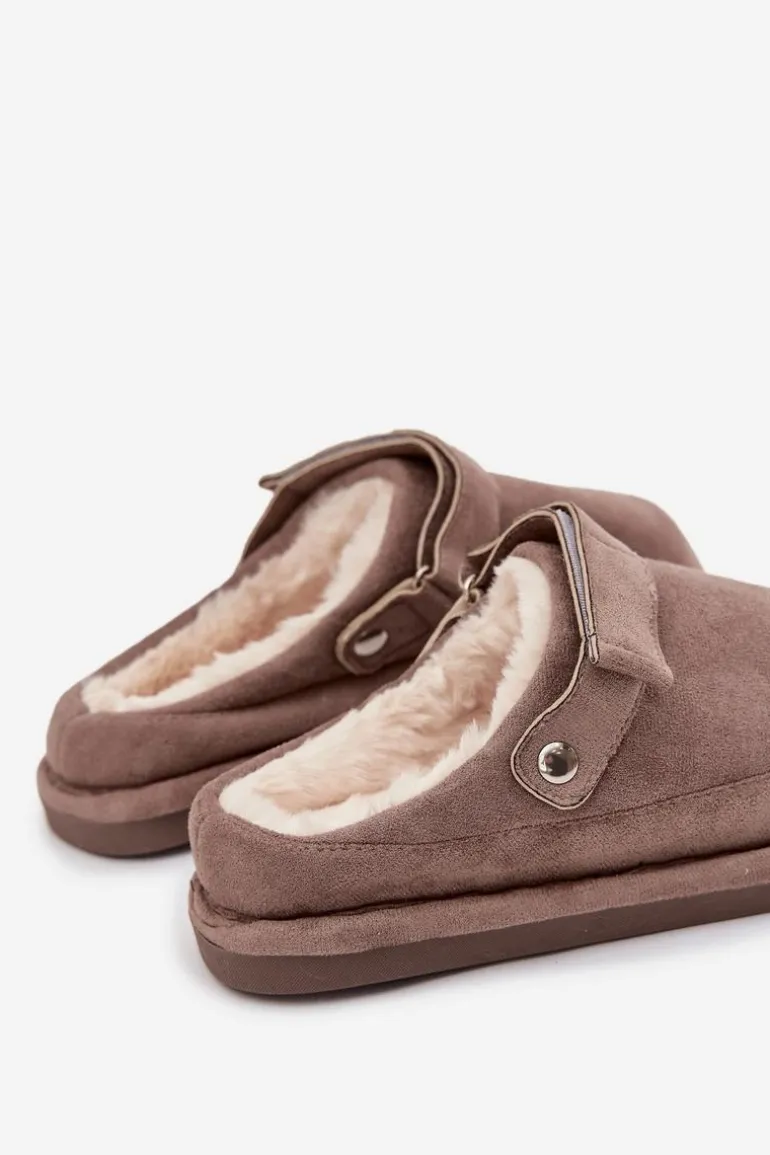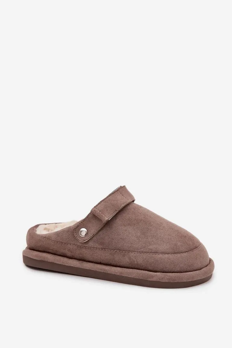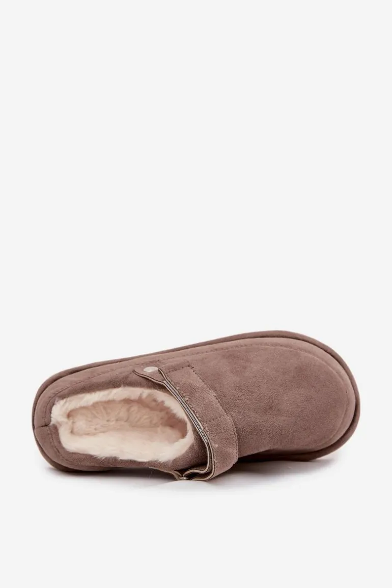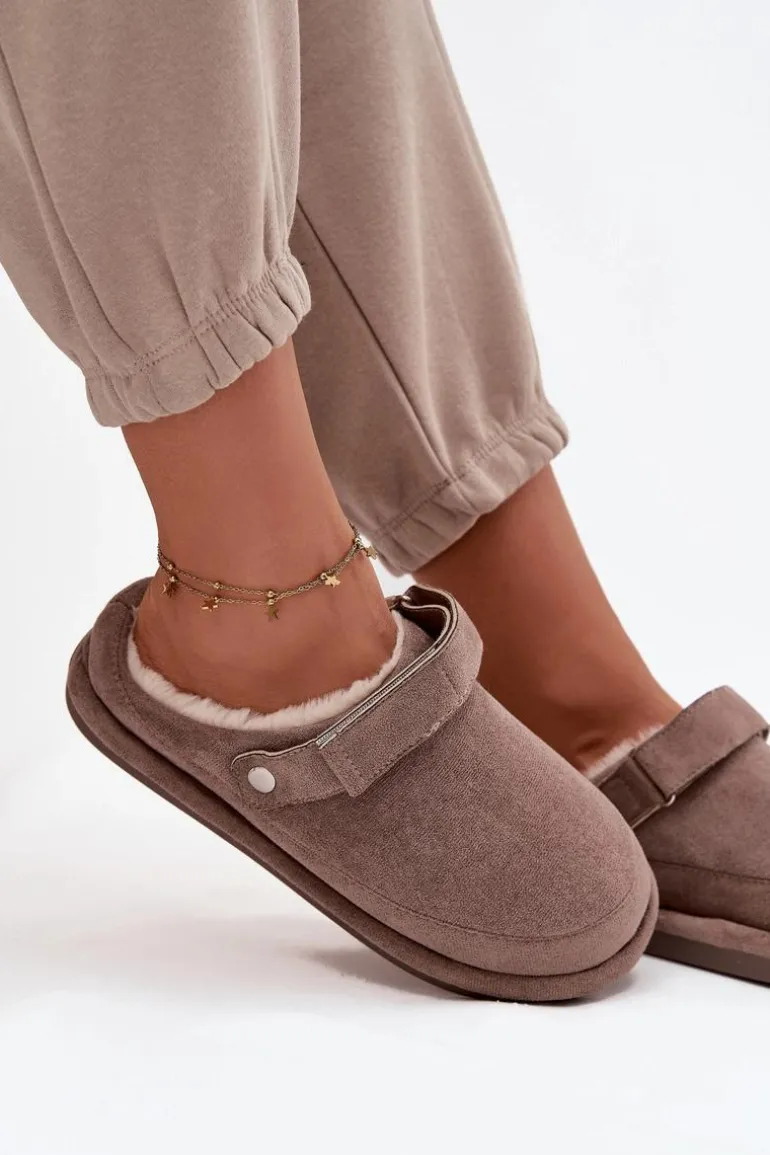 Damskie kapcie wykonane z miękkiej eko zamszowej tkaniny to wygodna i praktyczna propozycja na chłodniejsze dni. Posiadają podeszwę z gumowego tworzywa, która zapewnia stabilność i wygodę podczas chodzenia po domu. Zaokrąglone, zakryte noski podkreślają klasyczny wygląd obuwia, a ruchomy pasek zapinany na rzep ułatwia dopasowanie do stopy i dodaje funkcjonalności. Wnętrze ocieplone miękkim futerkiem gwarantuje ciepło i przyjemne otulenie, dzięki czemu kapcie idealnie sprawdzą się w domowym użytkowaniu.