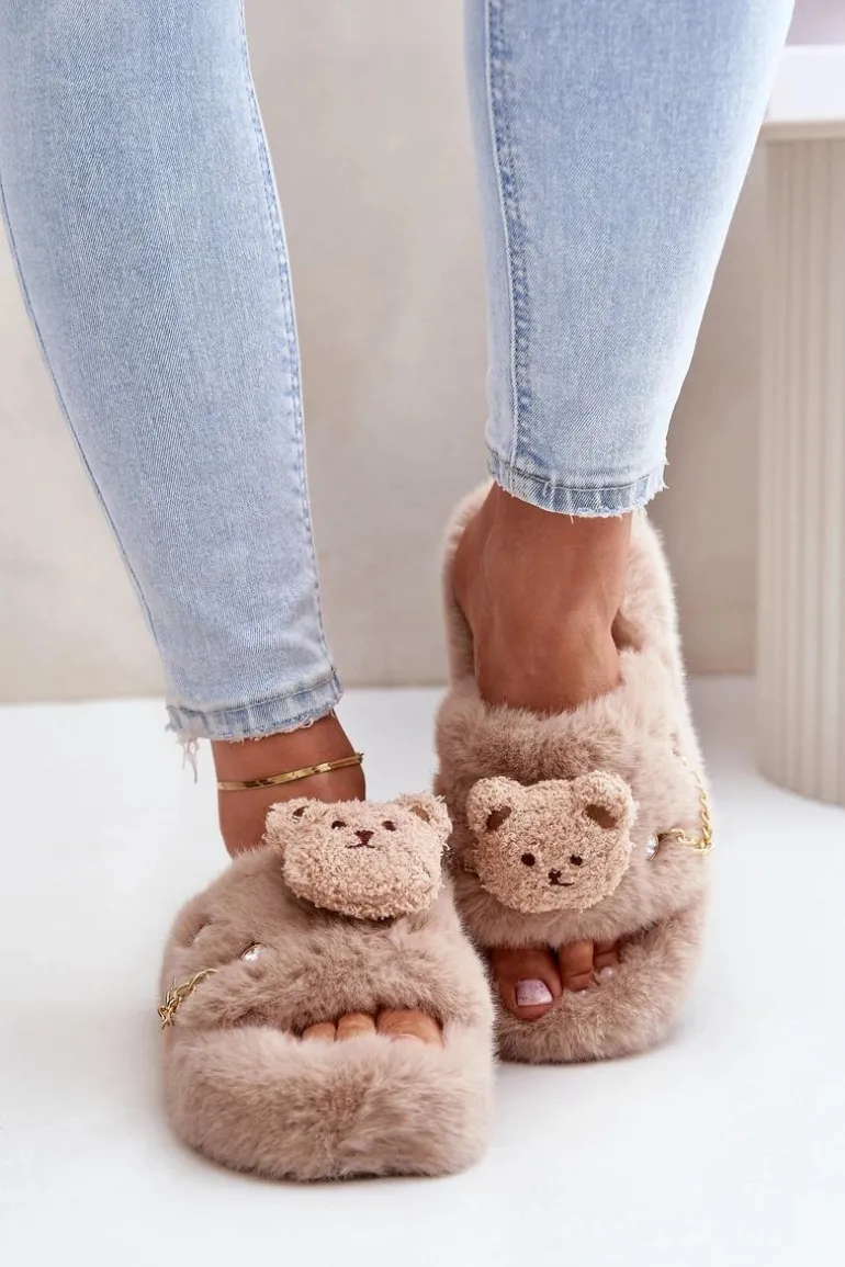Damskie kapcie futrzane z misiem i ozdobnymi elementami. Charakteryzują się miękkością i przytulnością, gwarantując wyjątkowy komfort oraz ciepło dla stóp. Ozdobny miś nadaje im zabawny, a jednocześnie stylowy wygląd, co czyni je nie tylko praktycznymi, ale także efektownymi. Idealne do domowego relaksu, te kapcie łączą wygodę z modnym wzornictwem. Przy wyborze rozmiaru prosimy kierować tabelą rozmiarów.