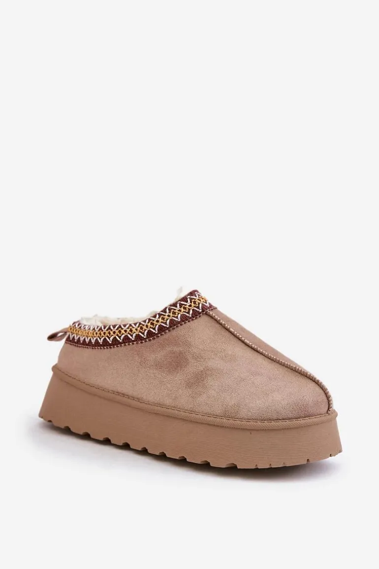 Stylowe kapcie wykonane z eko zamszu to doskonały wybór na chłodniejsze dni. Osadzone na platformie, z zakrytymi noskami i ocieplane miękkim futerkiem, zapewniają komfort i ciepło. Górę cholewki zdobi subtelny haft, który nadaje im eleganckiego charakteru. Idealne do codziennego użytku w domu oraz szybkie wyjścia na zewnątrz. Przy wyborze rozmiaru prosimy kierować tabelą rozmiarów.