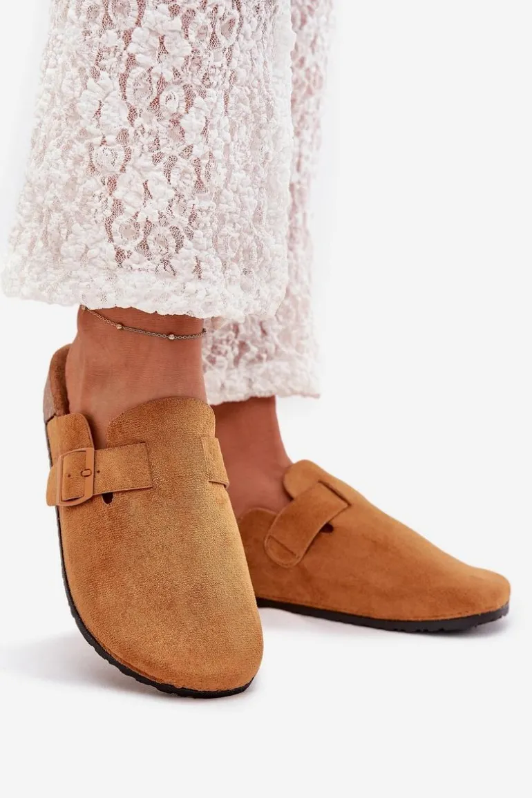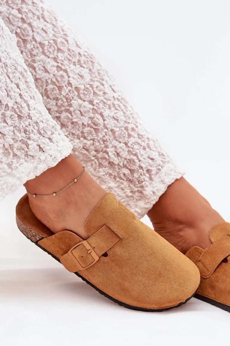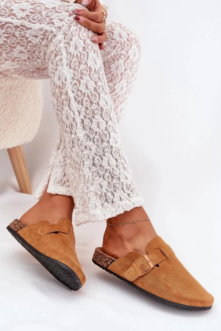 Klapki Chodaki Damskie i Na Korkowej Platformie Z Klamrą Camel Klarae