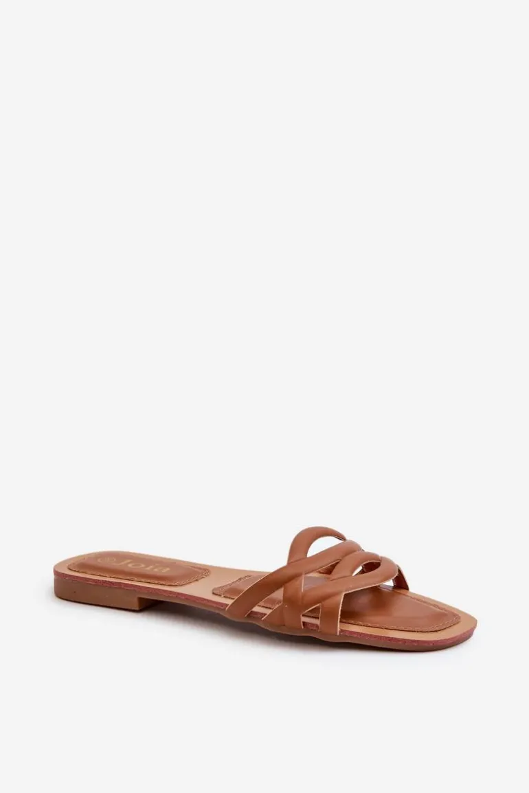Klapki Damskie Eko Skórzane Na Płaskim Obcasie Brązowe Moldela
