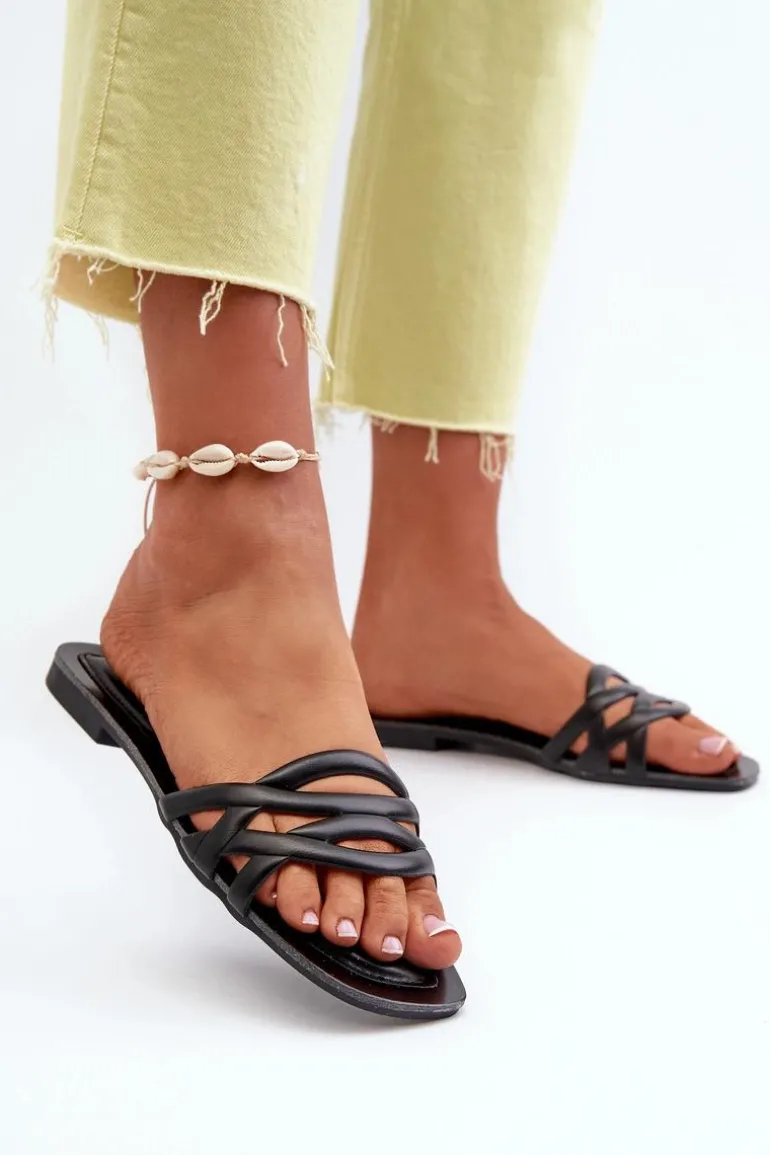 Klapki damskie wykonane z eko skóry. Płaski obcas sprawia, że są niezwykle wygodne podczas długich spacerów czy letnich wypadów. Modny design pozwala na swobodne łączenie ich zarówno z sukienkami, jak i spodniami, nadając letniej stylizacji niepowtarzalnego uroku. Model ten będzie pasować na wąską stopę. Przy wyborze rozmiaru prosimy sugerować się tabelą rozmiarów.