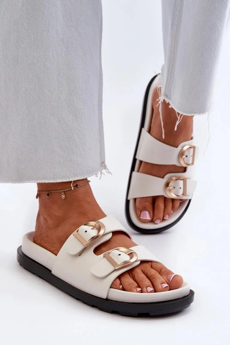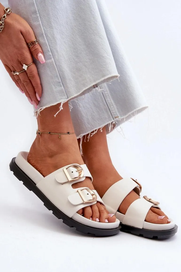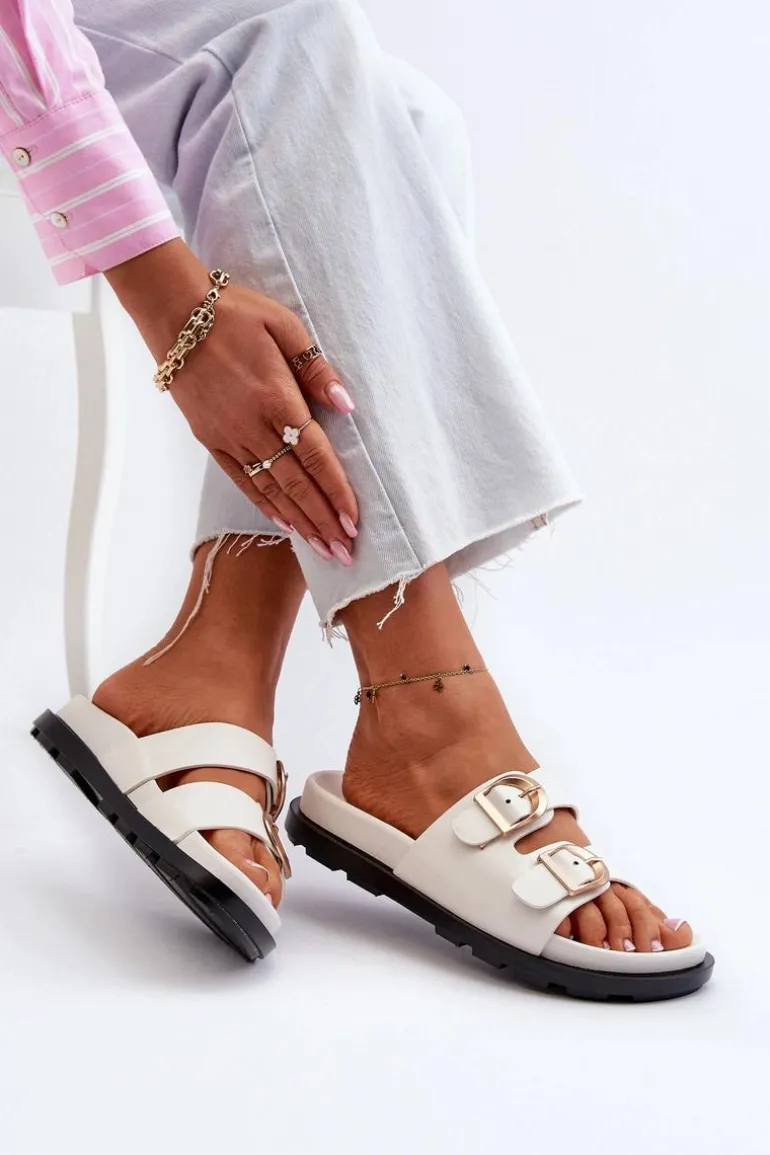 Klasyczne damskie klapki na platformie. Wykonane z eko skóry. Z przodu regulowane paski z klamrami, co pozwala na lepsze dopasowanie do stopy. Platforma zapewnia stabilność i wygodę noszenia przez cały dzień. Doskonałe na letnie spacery czy wieczorne wyjścia. Przy wyborze rozmiaru prosimy sugerować się tabelą rozmiarów.