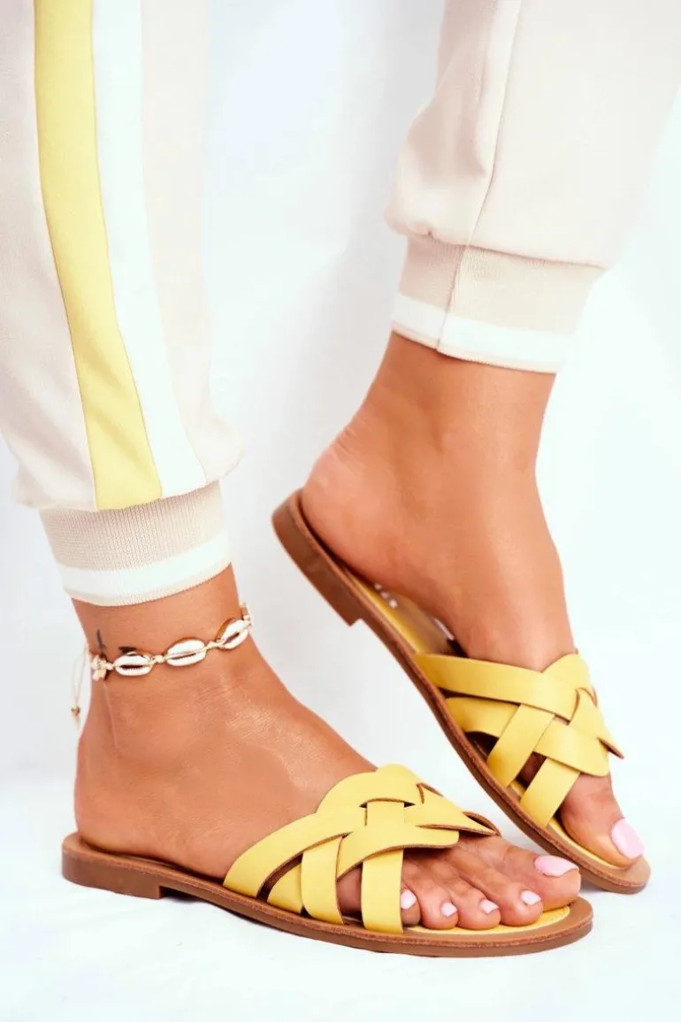 Klapki Damskie Eleganckie Żółte Mariah