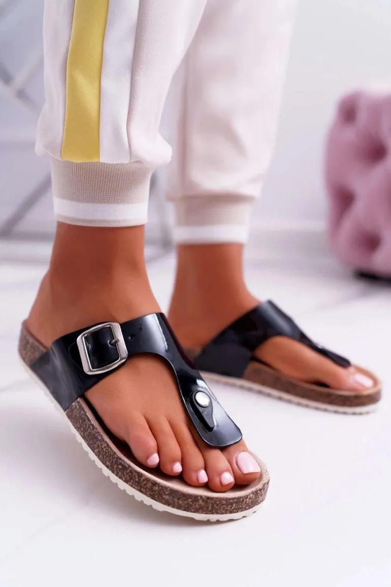 Klapki Damskie Japonki Na Korku Lakierowane Czarne Palette