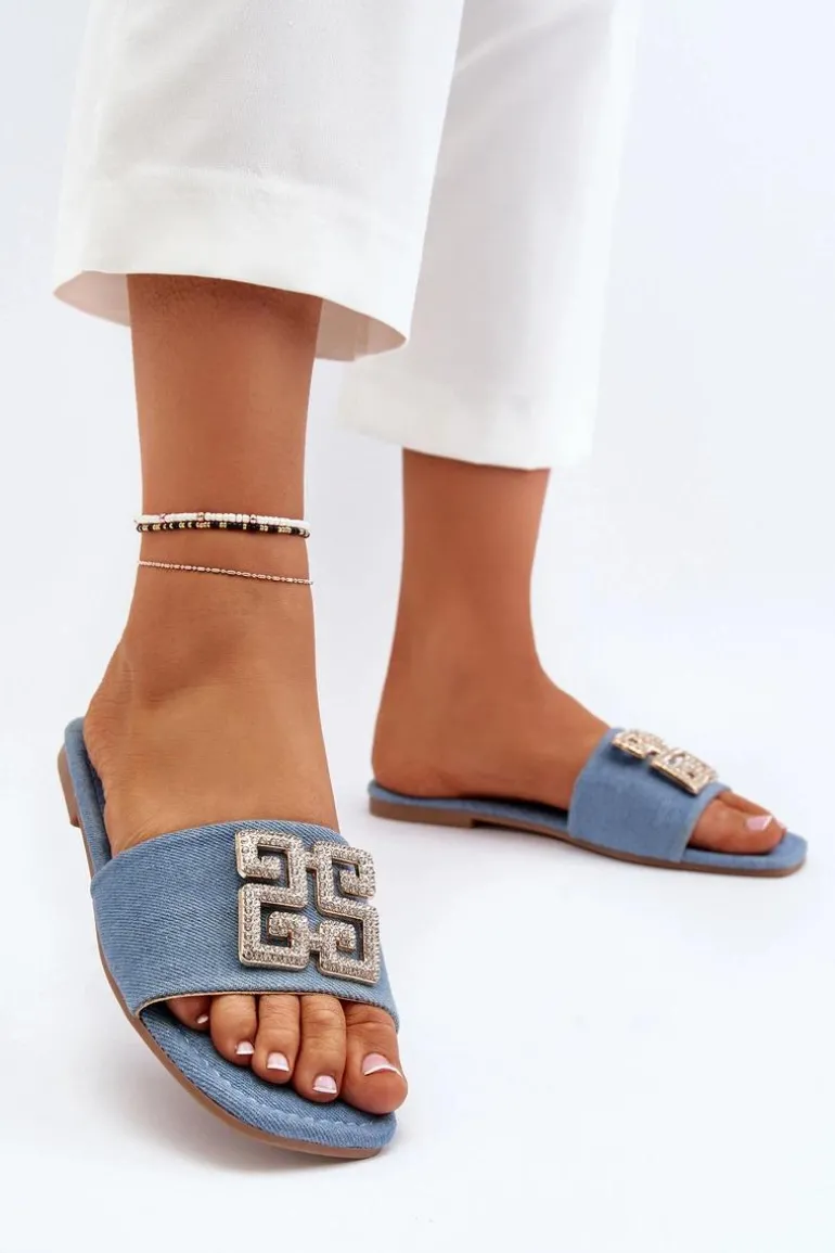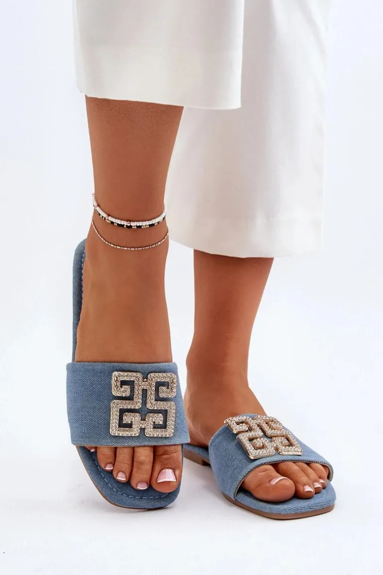 Klapki damskie osadzone na płaskim obcasie zapewniają wygodę noszenia przez cały dzień. Ozdoba z błyszczącymi cyrkoniami umieszczona z przodu dodaje im subtelnego blasku. Ten fason z pewnością podkreśli wyjątkowy charakter Twojej letniej stylizacji. Przy wyborze rozmiaru prosimy sugerować się tabelą rozmiarów.