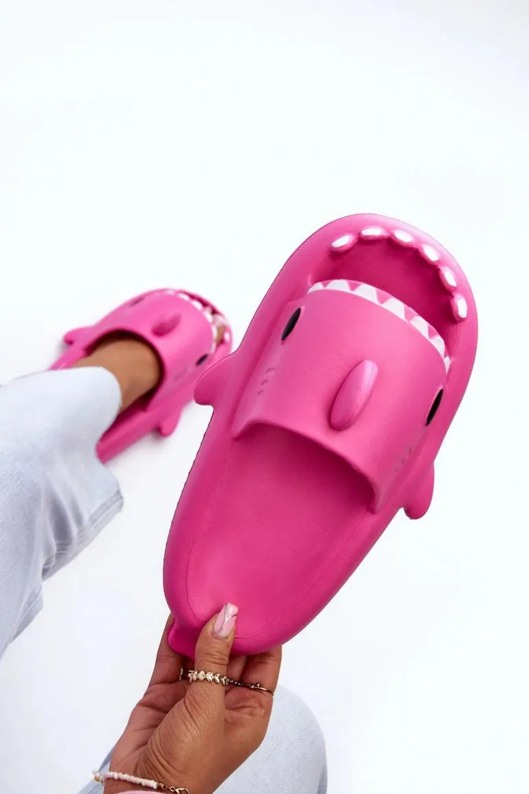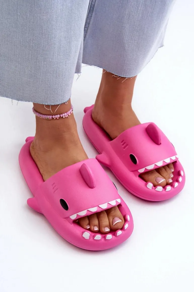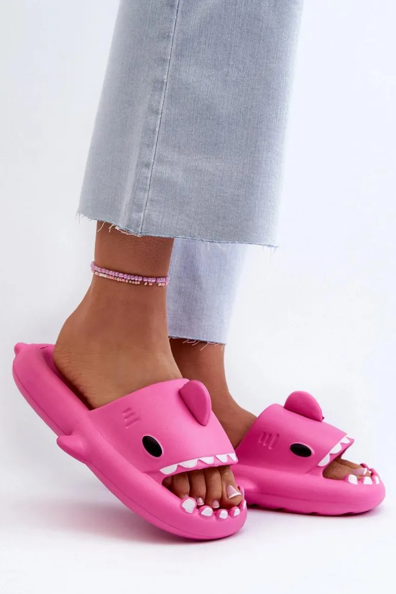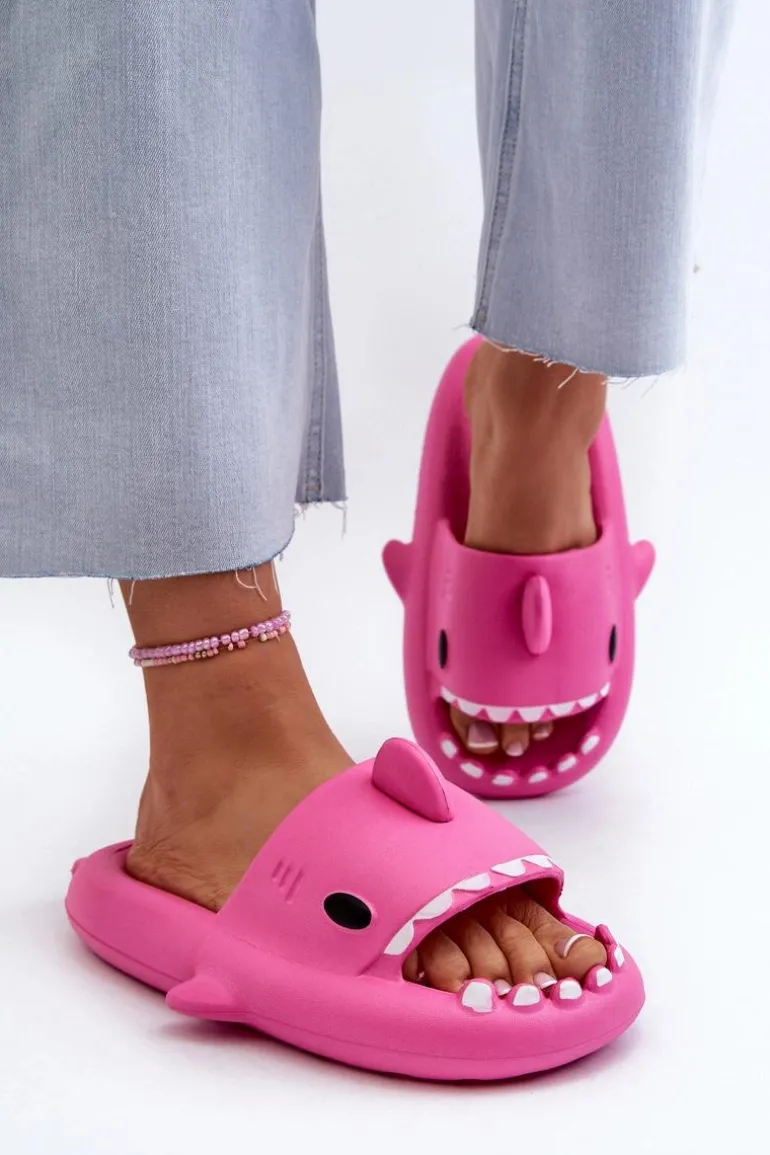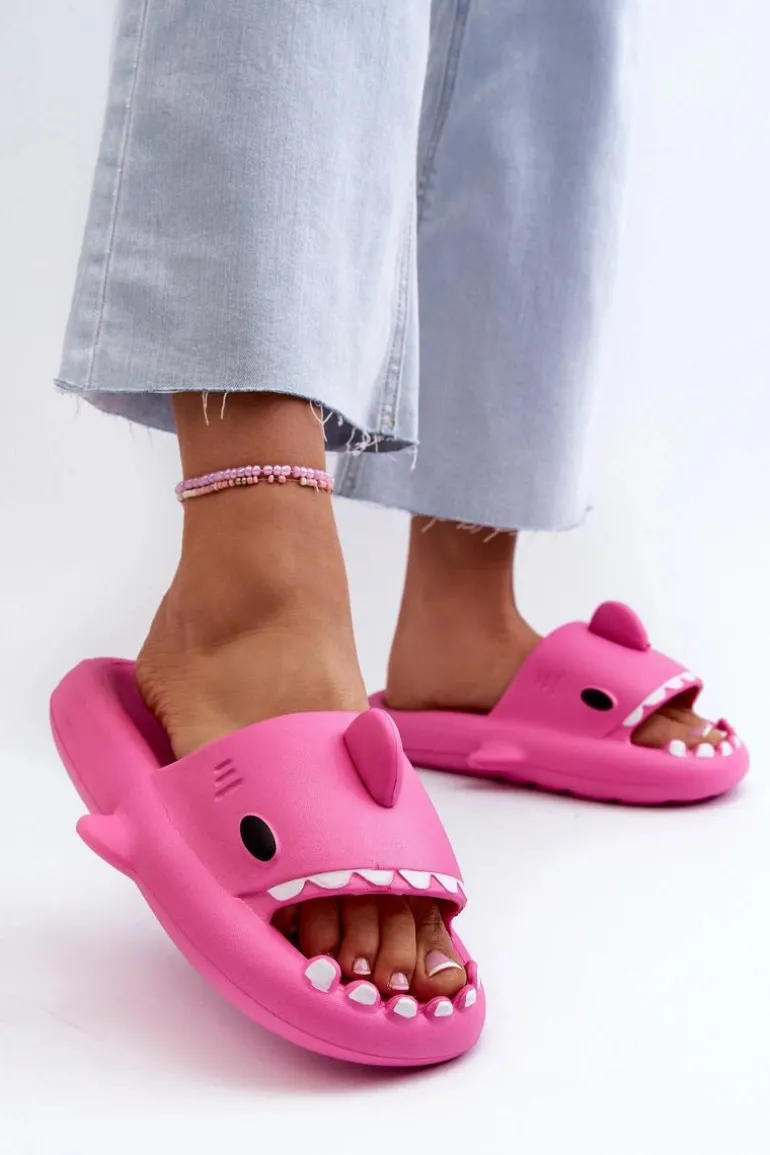 Klapki Damskie Lekkie Piankowe Z Motywem Rekina Fuksja Kasila