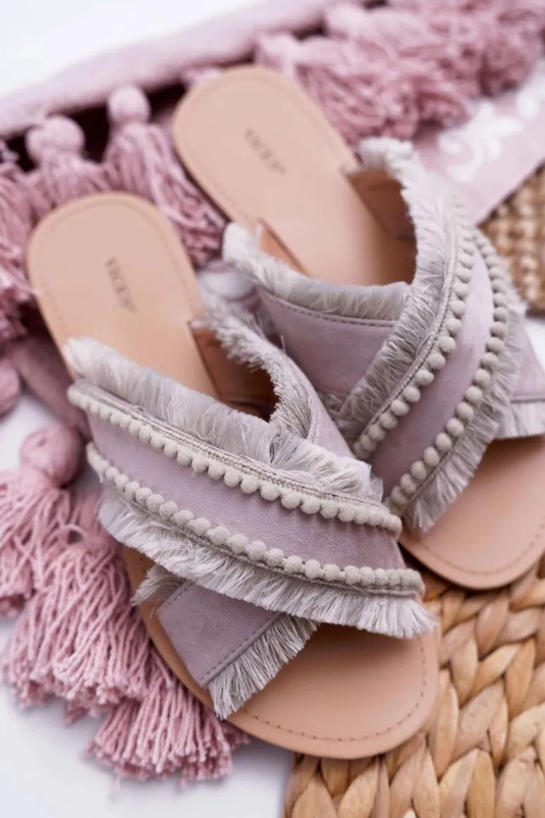 Klapki Damskie Materiałowe Vices 7269 Beżowe Jamen
