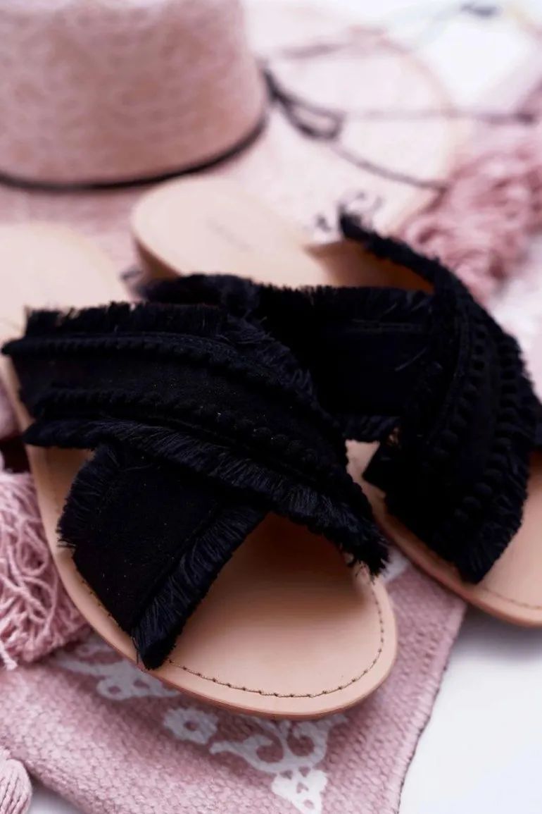 Klapki Damskie Materiałowe Vices 7269 Czarne Jamen