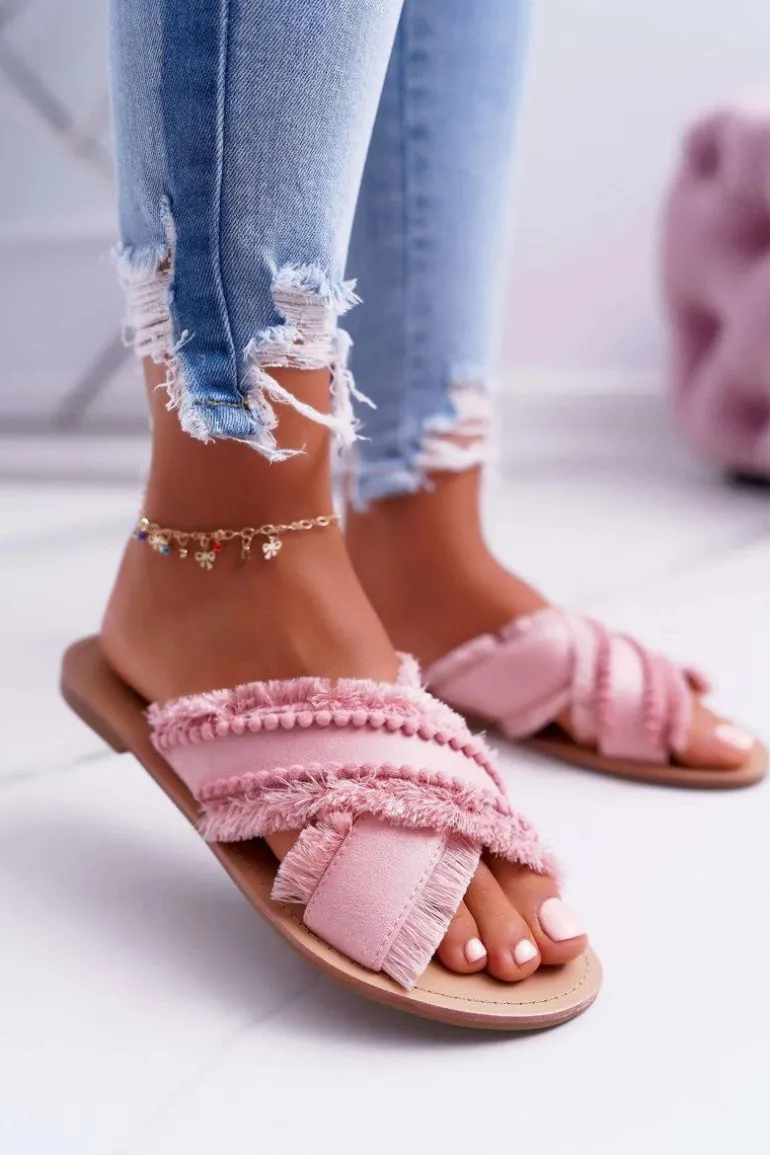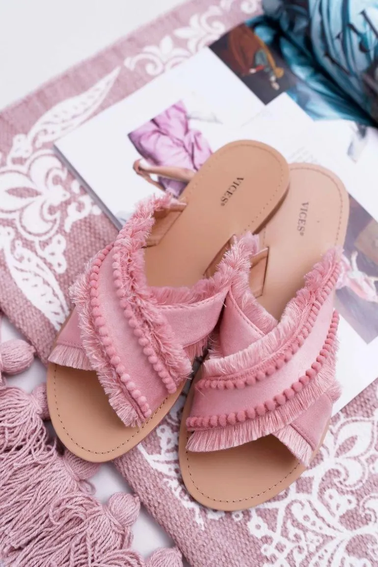 Klapki Damskie Materiałowe Vices 7269 Różowe Jamen