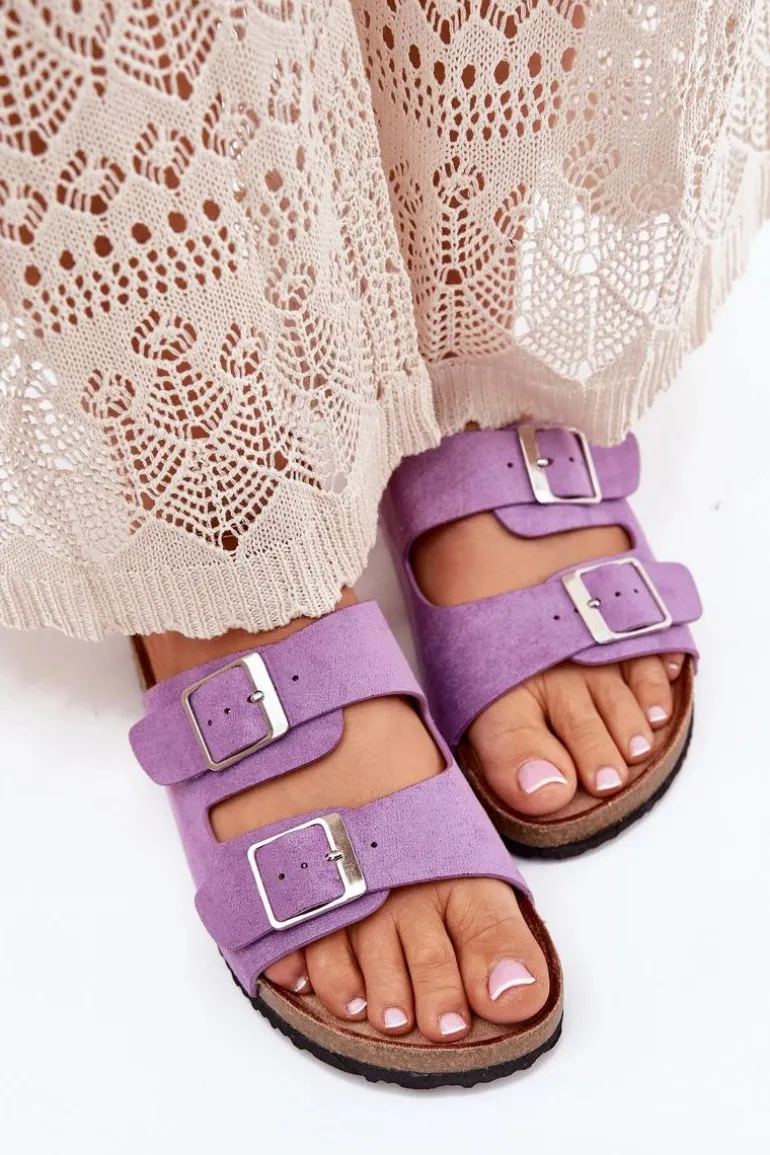 Klapki damskie z eko zamszu to połączenie stylu i wygody na co dzień. Wyposażone w dwa regulowane paski z klamrami, które umożliwiają idealne dopasowanie do stopy. Profilowana wkładka zapewnia komfort, a korkowa platforma dodaje lekkości i stabilności. Doskonałe na codzienne stylizacje, łączą funkcjonalność z modnym wyglądem. Przy wyborze rozmiaru prosimy sugerować się tabelą rozmiarów.
