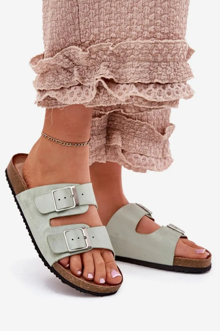 Klapki damskie z eko zamszu to połączenie stylu i wygody na co dzień. Wyposażone w dwa regulowane paski z klamrami, które umożliwiają idealne dopasowanie do stopy. Profilowana wkładka zapewnia komfort, a korkowa platforma dodaje lekkości i stabilności. Doskonałe na codzienne stylizacje, łączą funkcjonalność z modnym wyglądem. Przy wyborze rozmiaru prosimy sugerować się tabelą rozmiarów.