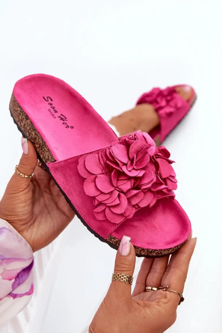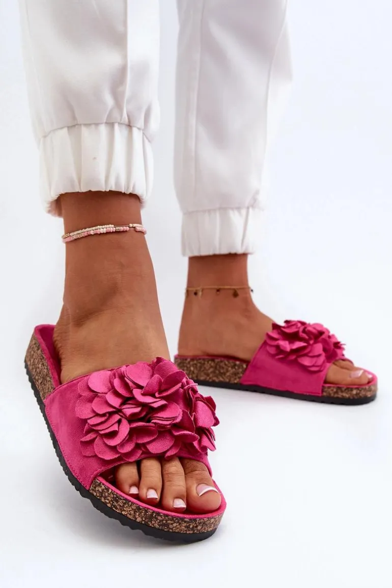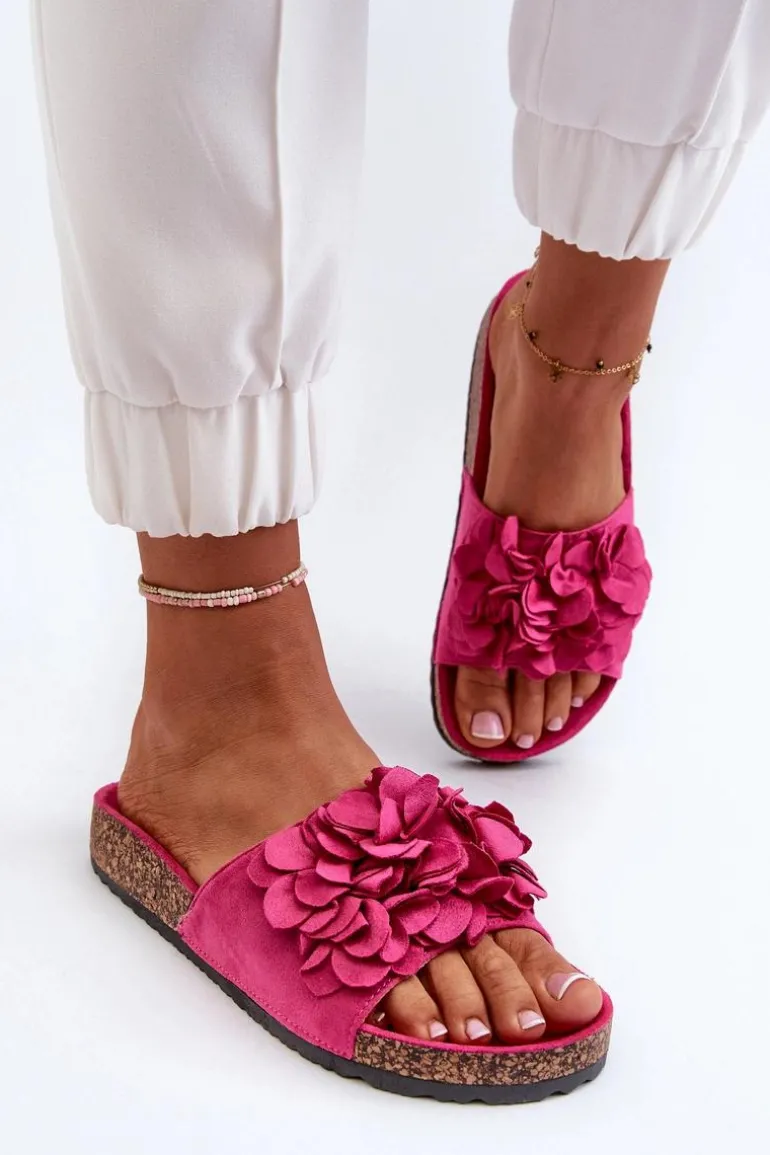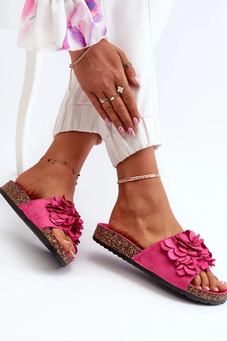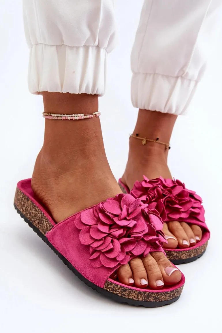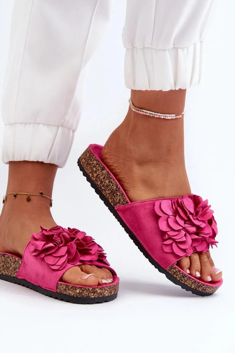 Klapki Damskie Na Korkowej Platformie Z Eko Zamszu Fuksja Jaihini