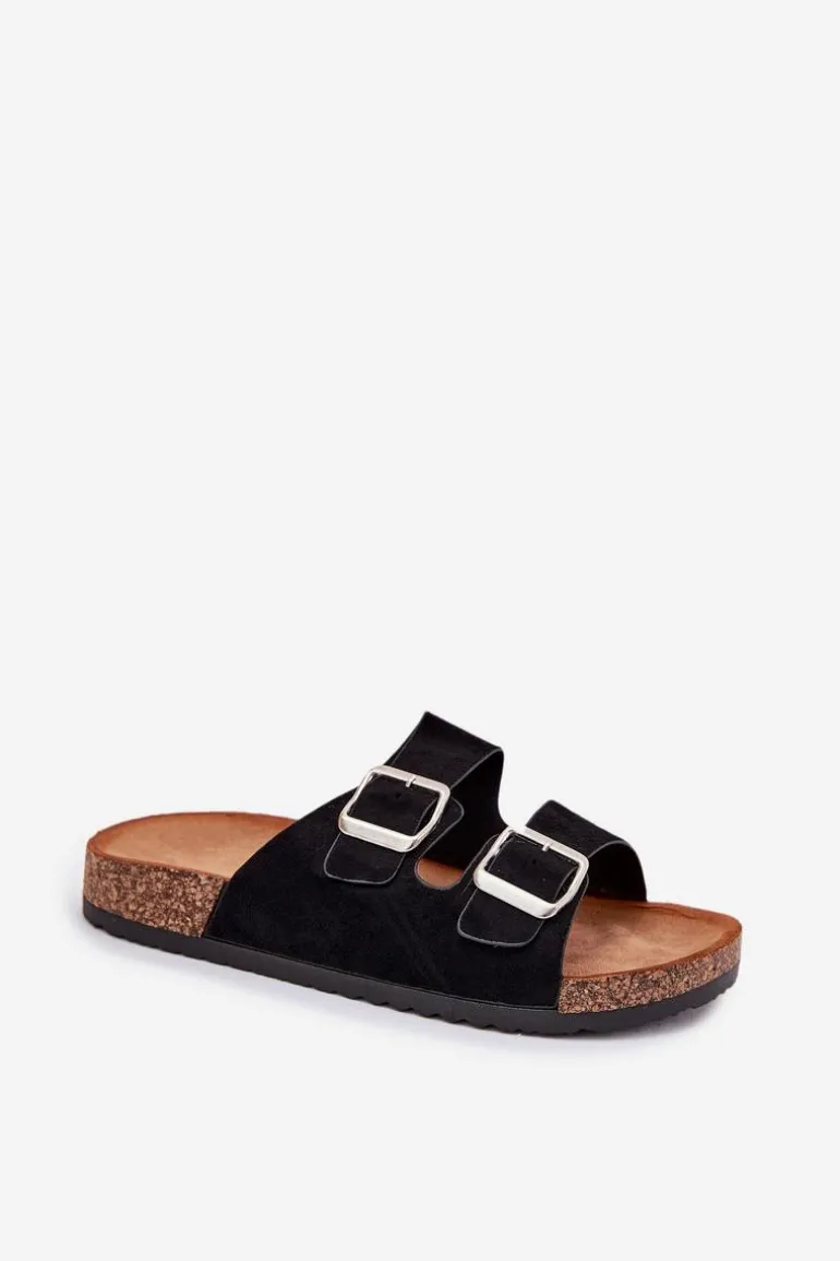 Klapki damskie z eko zamszu, osadzone na korkowej podeszwie, to wygodna i stylowa opcja na ciepłe dni. Dwa paski z klamrami pozwalają na idealne dopasowanie do stopy, a profilowana wkładka zapewnia komfort przez cały dzień. Doskonałe do codziennych stylizacji z sukienkami, spódnicami i spodniami. Przy wyborze rozmiaru prosimy sugerować się tabelą rozmiarów.