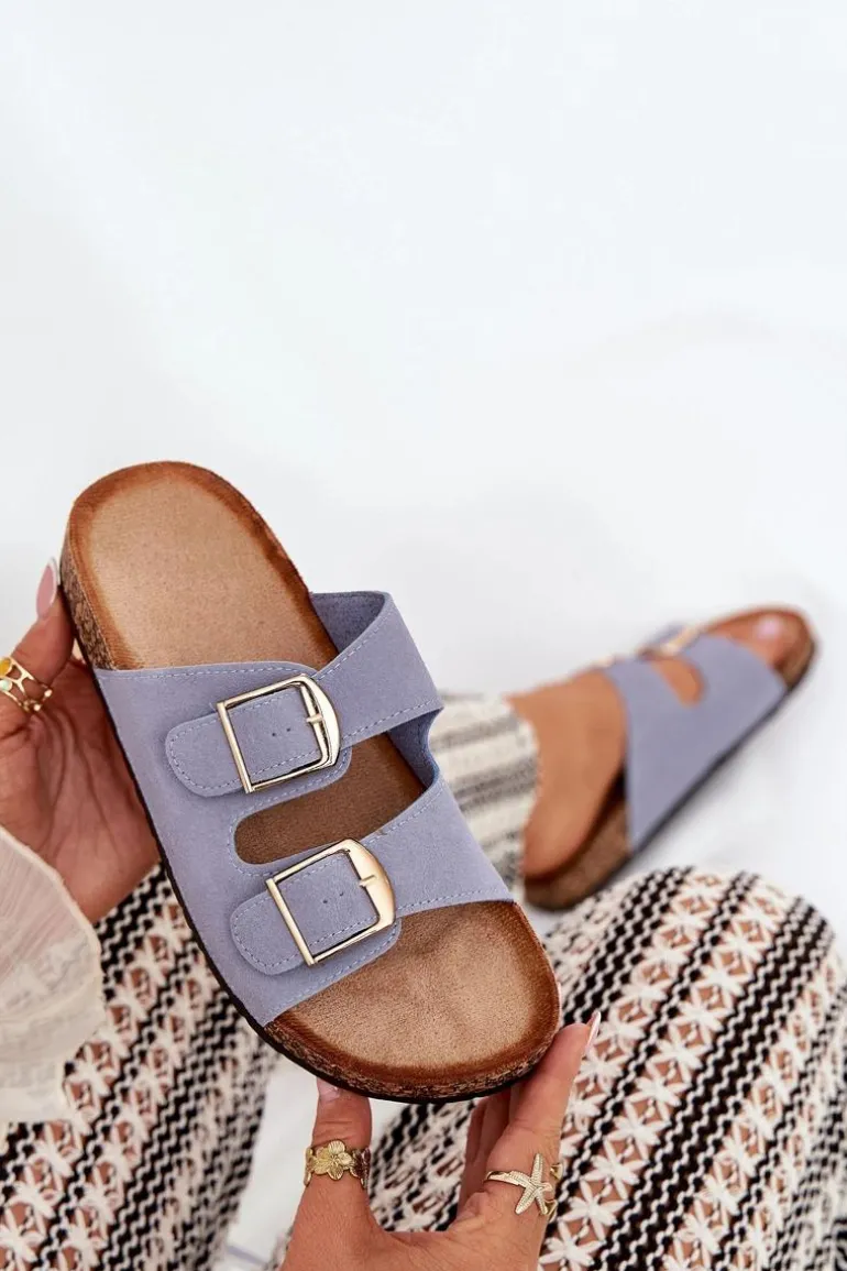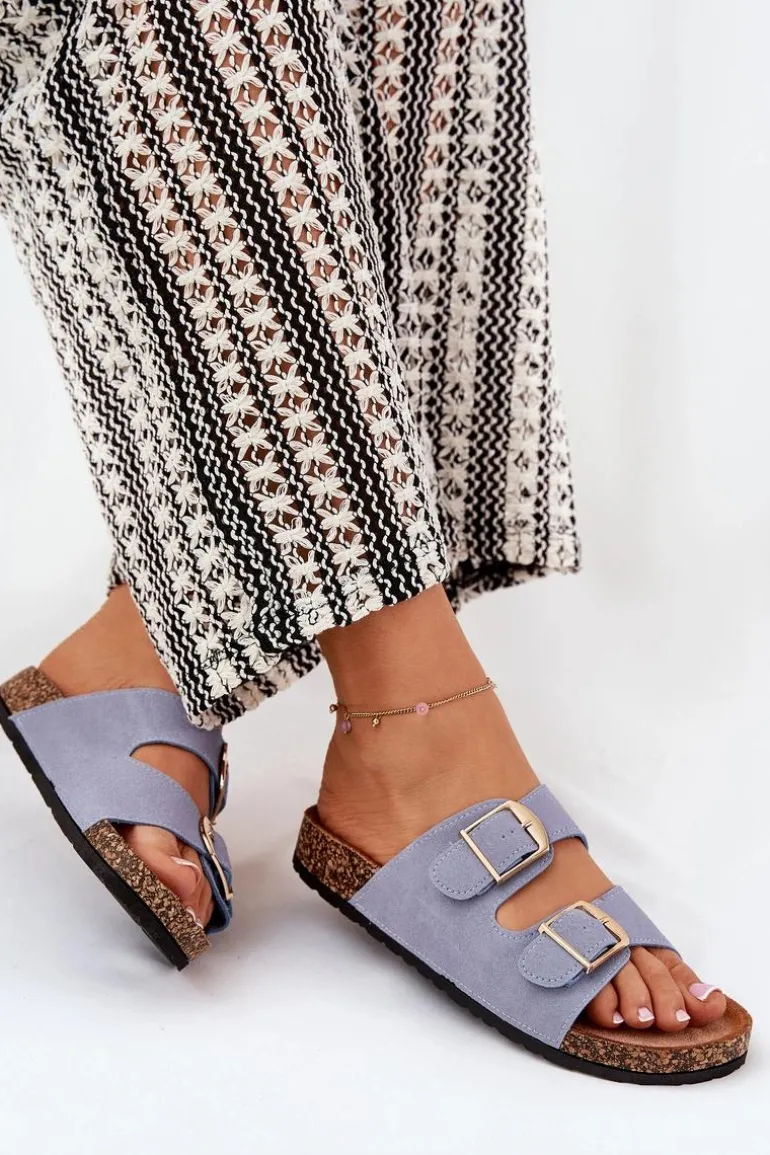 Stylowe klapki damskie na korkowej platformie, które łączą wygodę z modnym wyglądem. Z przodu znajdują się dwa paski z klamrami, które zapewniają idealne dopasowanie. Profilowana eko zamszowa wkładka gwarantuje komfort przez cały dzień. Te klapki będą doskonałym wyborem na letnie dni, świetnie komponując się z sukienkami, spódnicami i spodniami. Przy wyborze rozmiaru prosimy sugerować się tabelą rozmiarów.