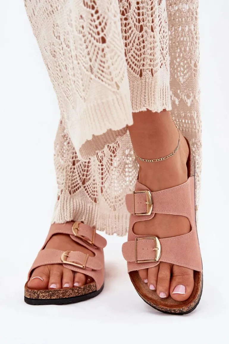 Stylowe klapki damskie na korkowej platformie, które łączą wygodę z modnym wyglądem. Z przodu znajdują się dwa paski z klamrami, które zapewniają idealne dopasowanie. Profilowana eko zamszowa wkładka gwarantuje komfort przez cały dzień. Te klapki będą doskonałym wyborem na letnie dni, świetnie komponując się z sukienkami, spódnicami i spodniami. Przy wyborze rozmiaru prosimy sugerować się tabelą rozmiarów.