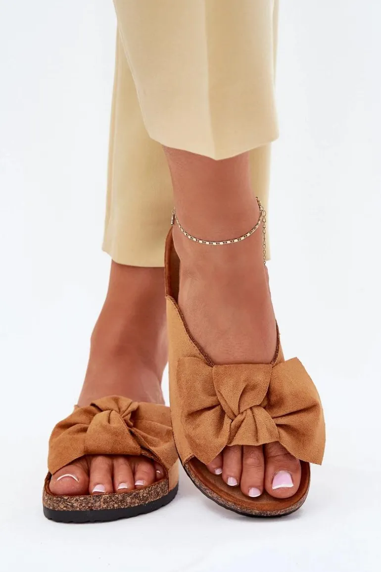 Klapki damskie z eko zamszu na korkowej podeszwie to idealny wybór na ciepłe dni. Wygodna, profilowana wkładka zapewnia komfort przez cały dzień, a kokardka z przodu dodaje uroku. Klasyczny fason, który doskonale sprawdzi się w codziennych stylizacjach. Przy wyborze rozmiaru rosimy sugerować się tabelą rozmiarów.