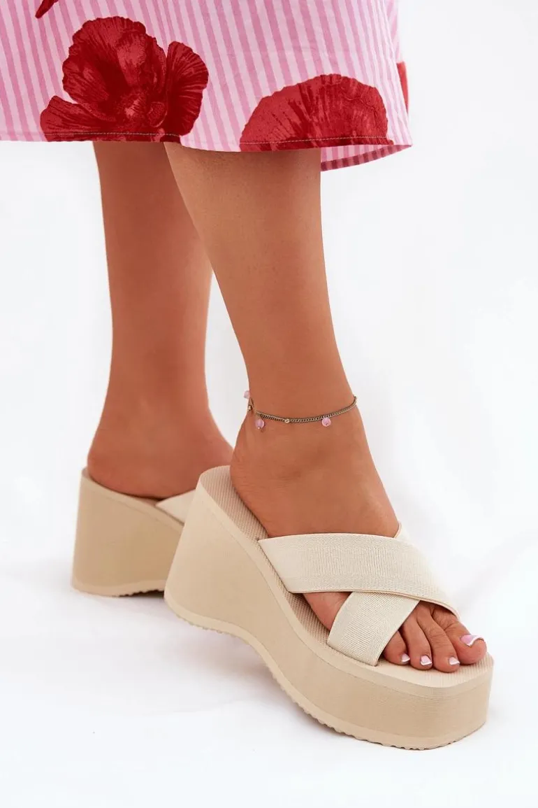 Lekkie klapki damskie na platformie i koturnie, które łączą komfort z modnym wyglądem. Wierzch butów wykonany z materiału tekstylnego, co zapewnia przewiewność i wygodę. Idealne na wakacyjne wyjazdy, doskonale pasują do letnich sukienek, spódnic czy szortów, dodając każdej stylizacji lekkości i stylowego charakteru. Przy wyborze rozmiaru prosimy sugerować się tabelą rozmiarów.