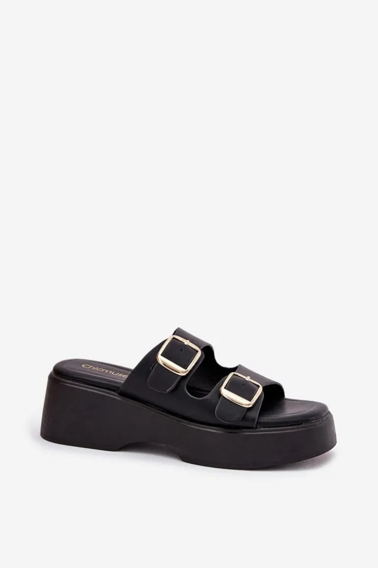 Damskie klapki wykonane ze skóry ekologicznej. Osadzone na koturnie wraz z platformą. Model ten wyróżniają dwie klamry z regulowanymi paskami. Miękka wkładka zapewnia komfort noszenia przez cały dzień, niezależnie od okazji. Klapki świetnie sprawdzą się zarówno w zestawieniu z letnią sukienką, jak i z materiałowymi spodniami, dodając stylu każdej stylizacji. Idealne na co dzień oraz na wyjścia ze znajomymi! Przy wyborze rozmiaru prosimy kierować się tabelą rozmiarów.