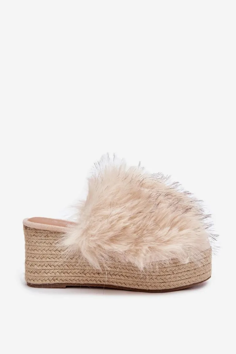 Klapki damskie z futerkiem to modny wybór na letnie dni. Osadzone na koturnie i platformie z plecionką, dodają lekkości i wakacyjnego uroku, idealnie komponując się z letnimi sukienkami, spódnicami czy szortami. Przy wyborze rozmiaru prosimy sugerować się tabelą rozmiarów.