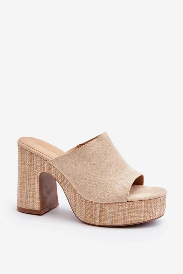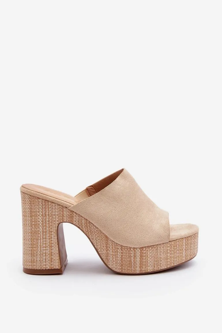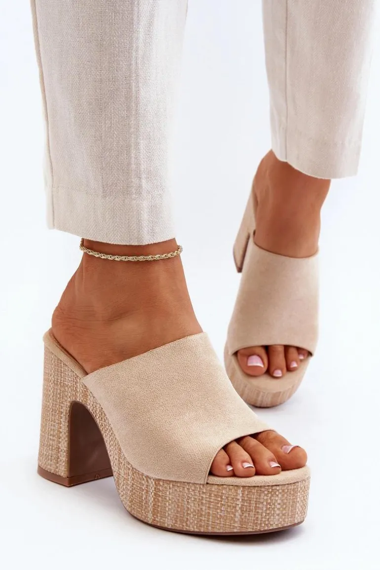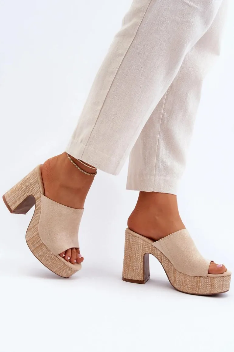 Klapki Damskie Na Obcasie Słupku Beżowe Siobhan