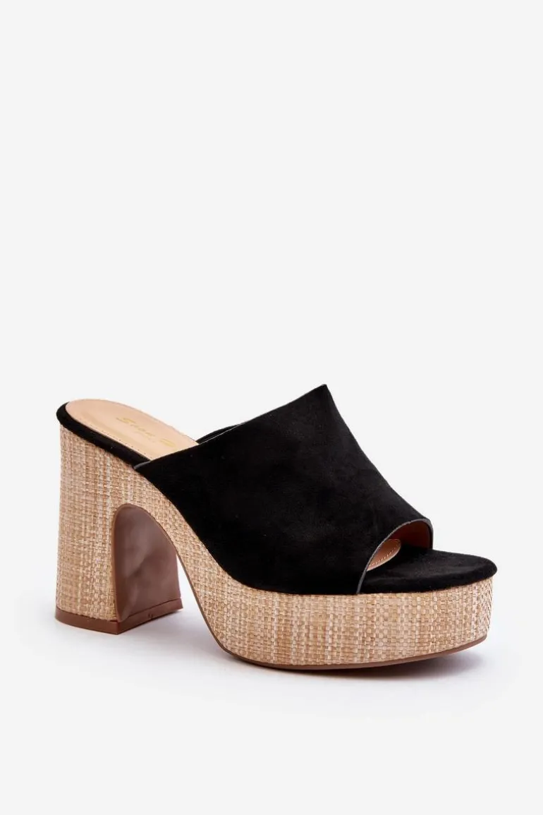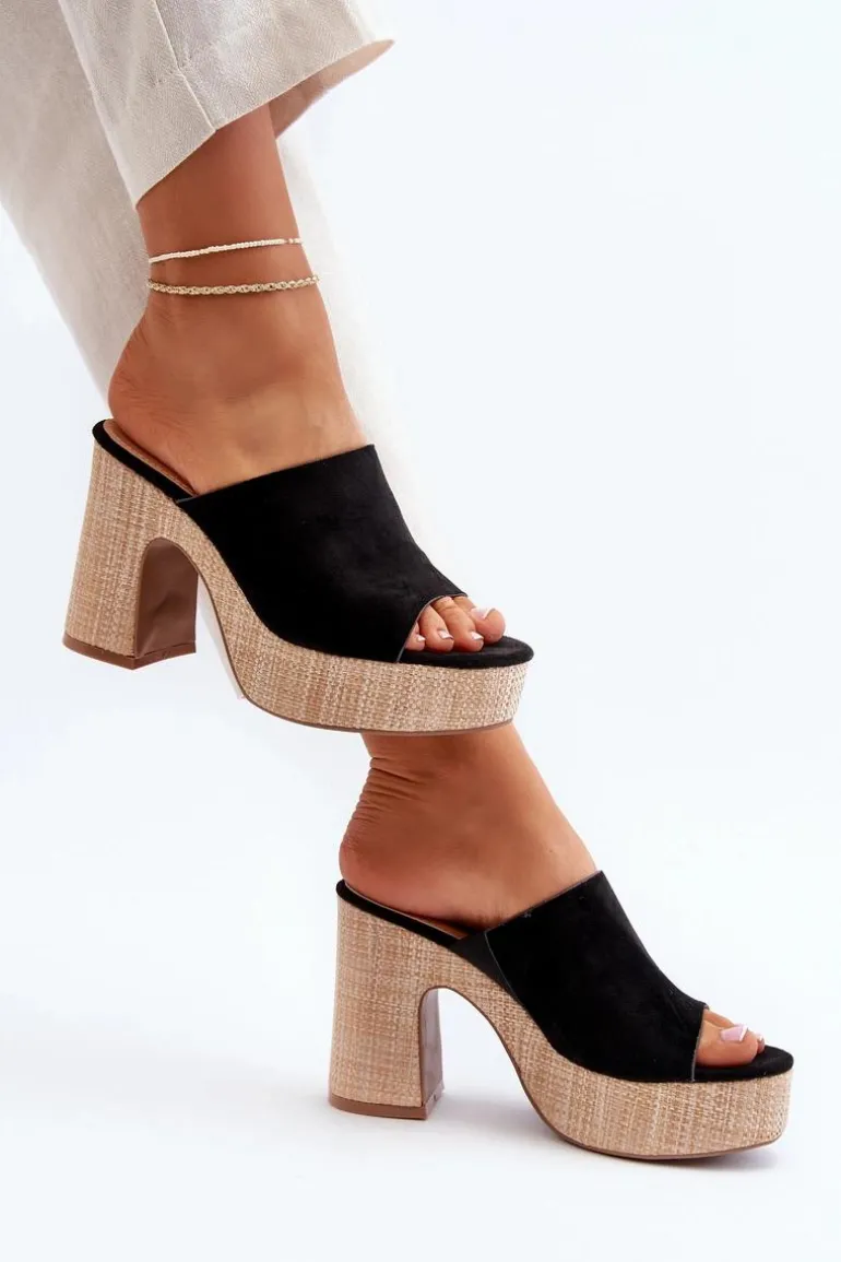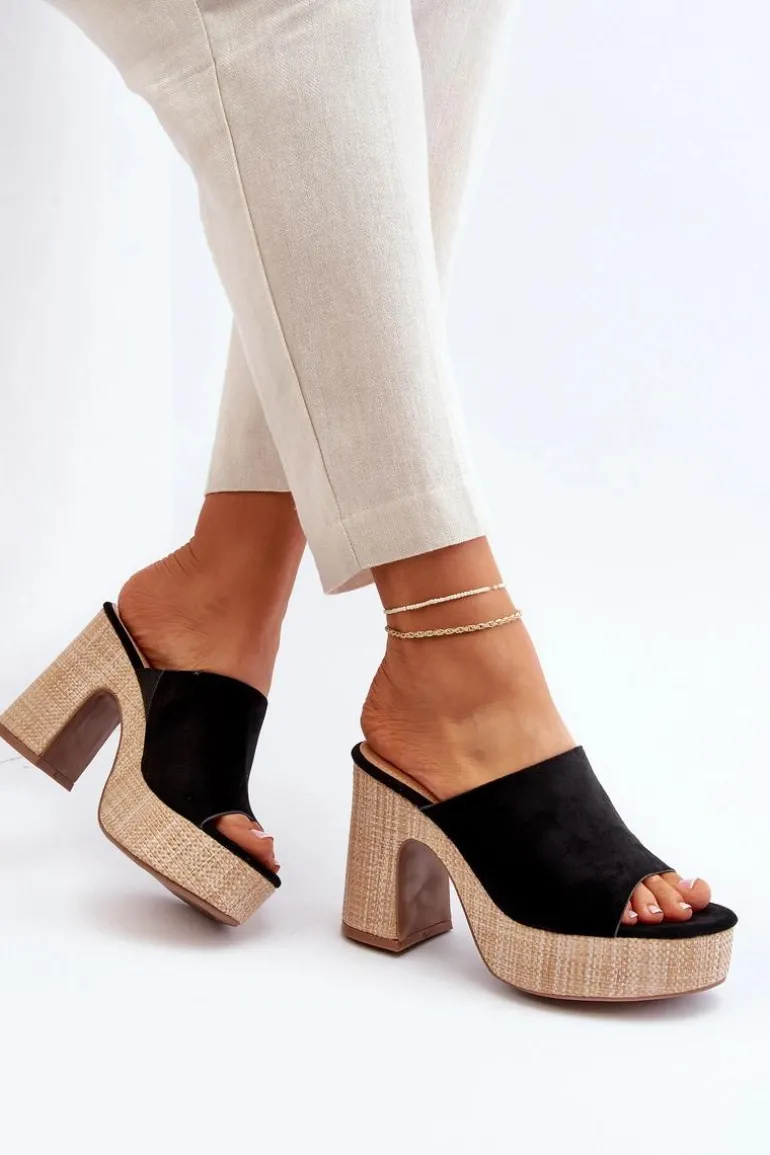 Klapki Damskie Na Obcasie Słupku Czarne Siobhan