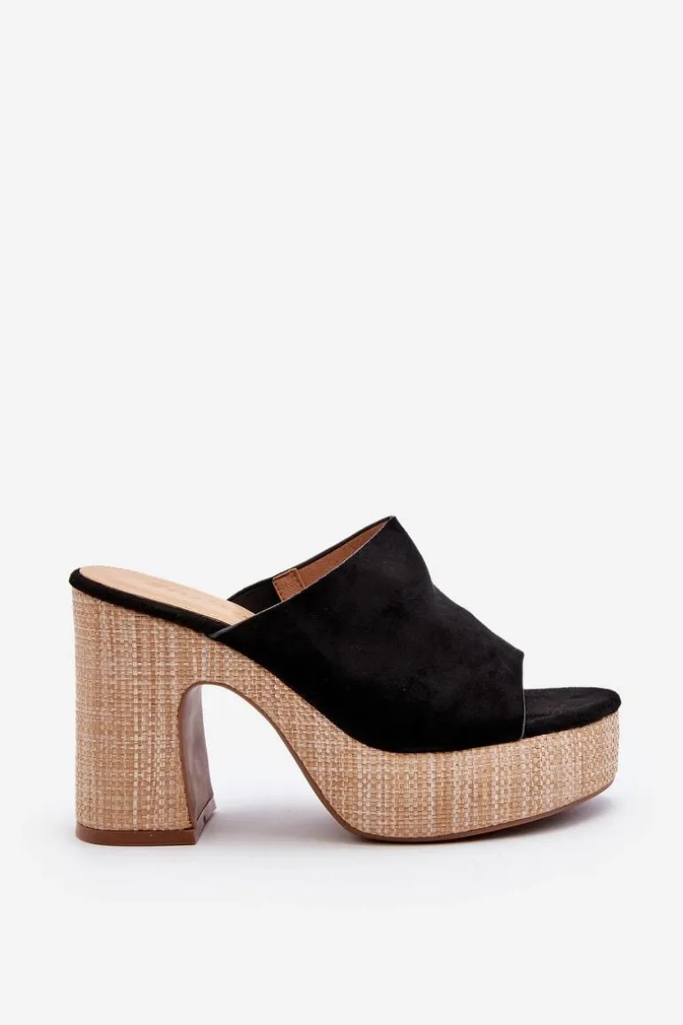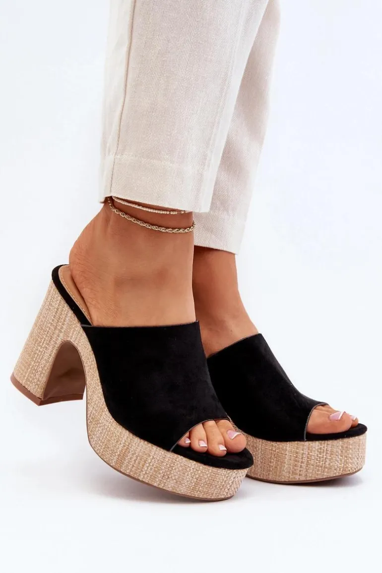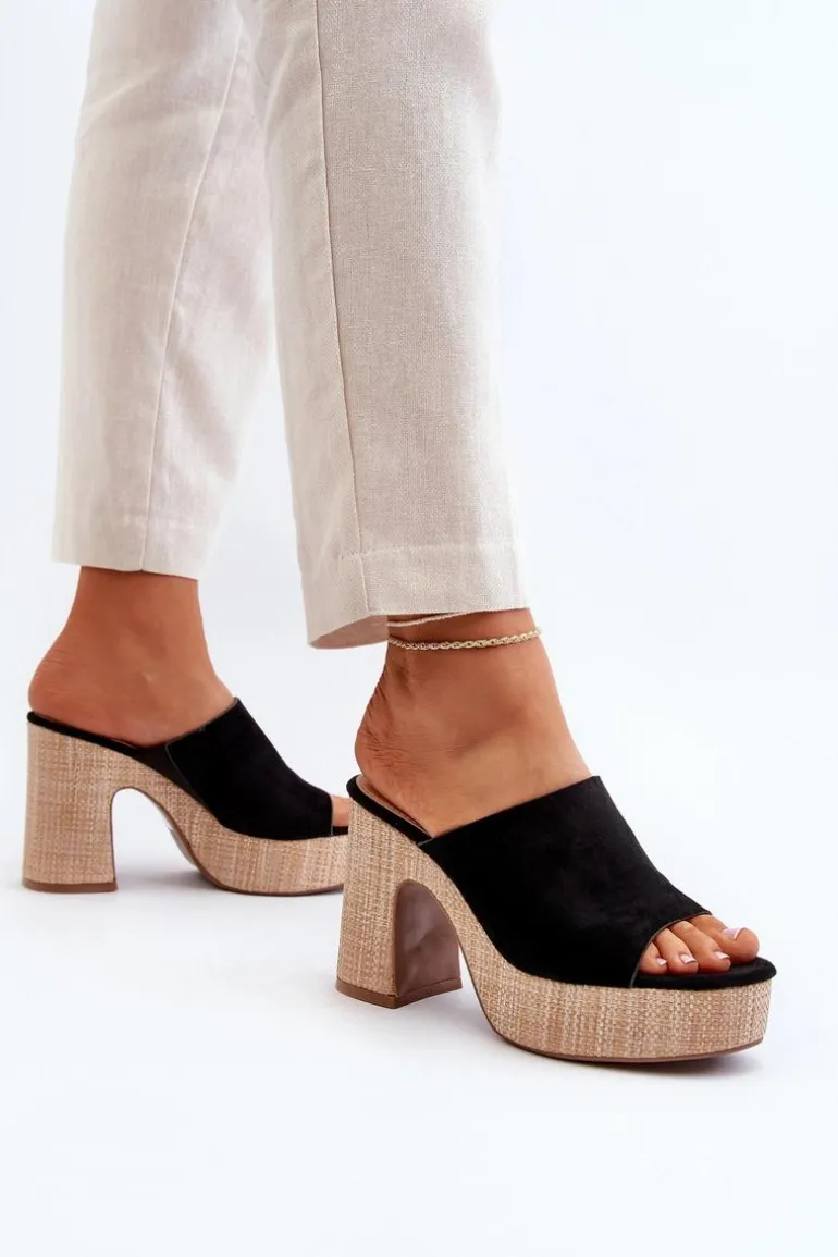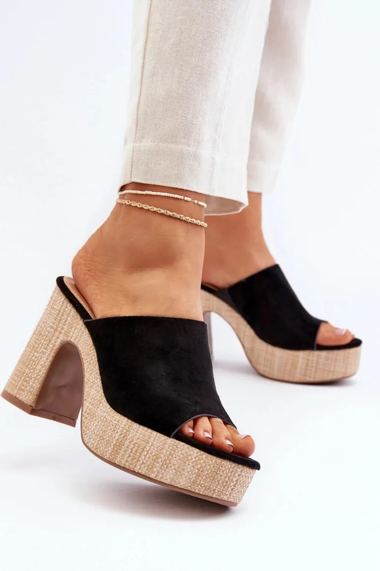 Klapki Damskie Na Obcasie Słupku Czarne Siobhan