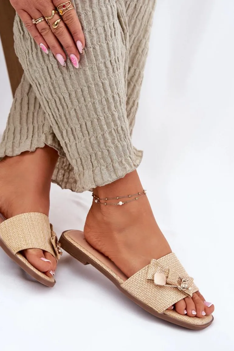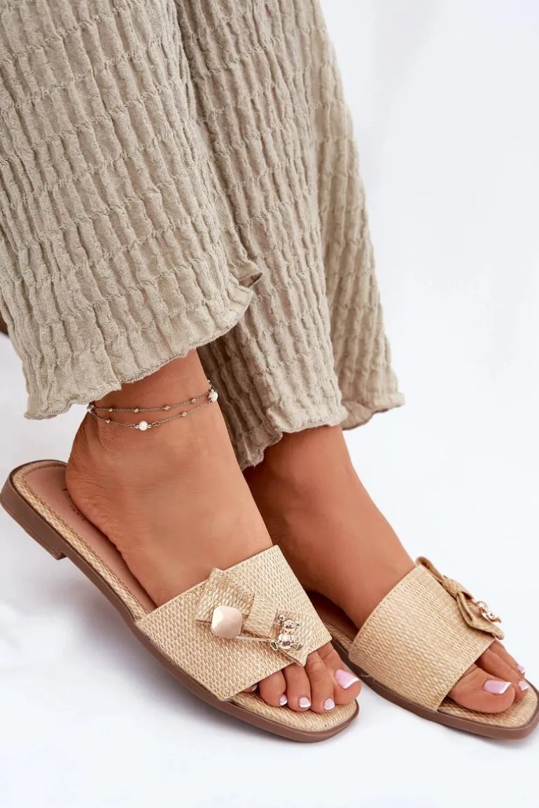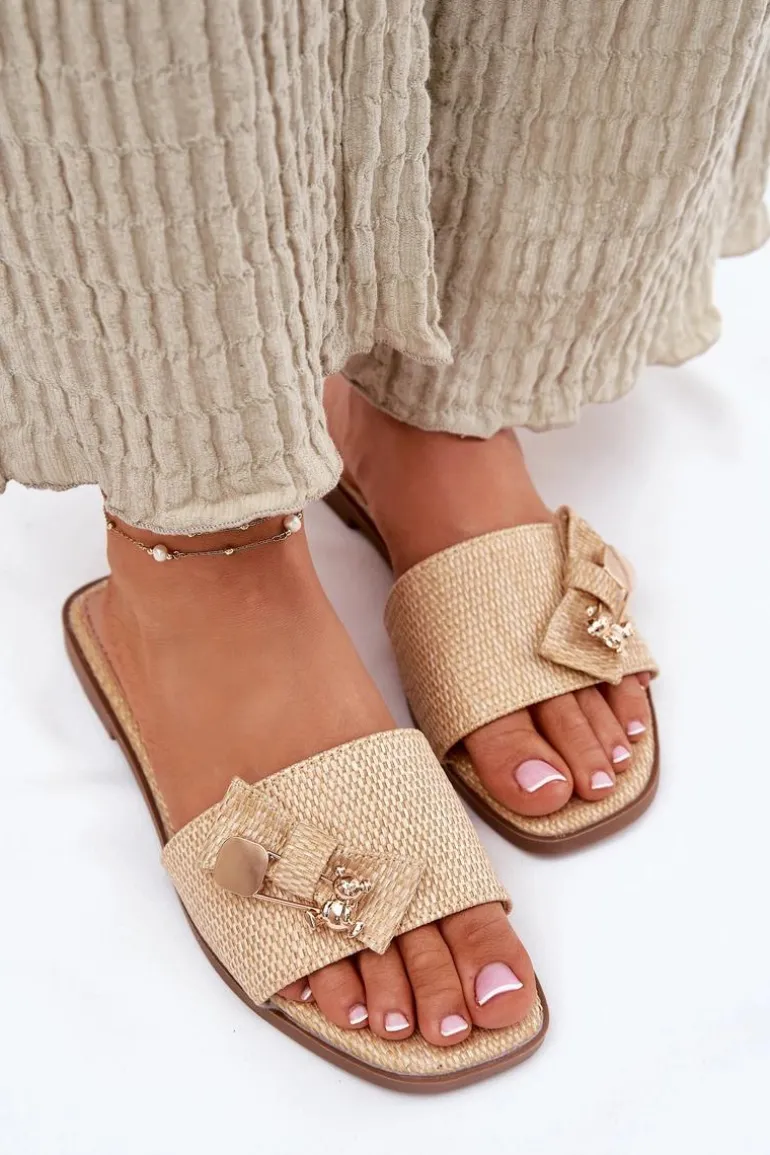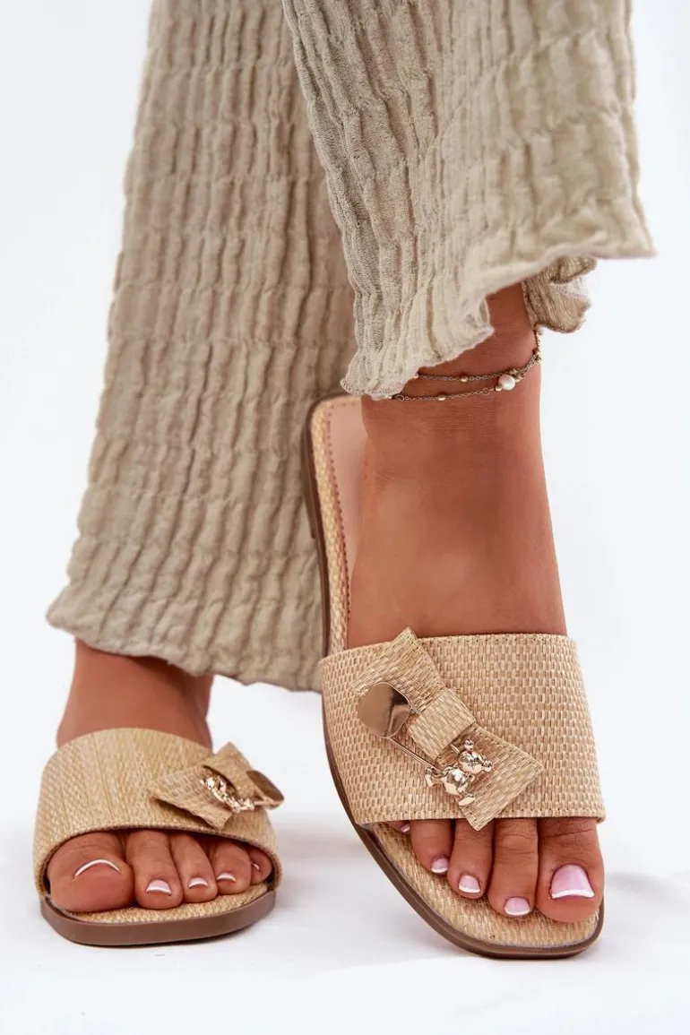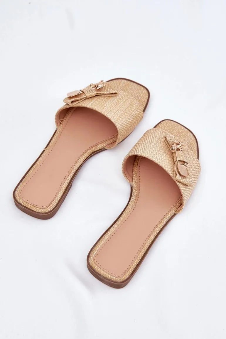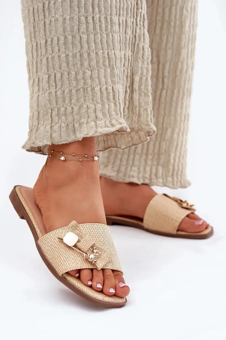 Klapki Damskie Na Płaskim Obcasie Z Kokardą Beżowe Sallariela
